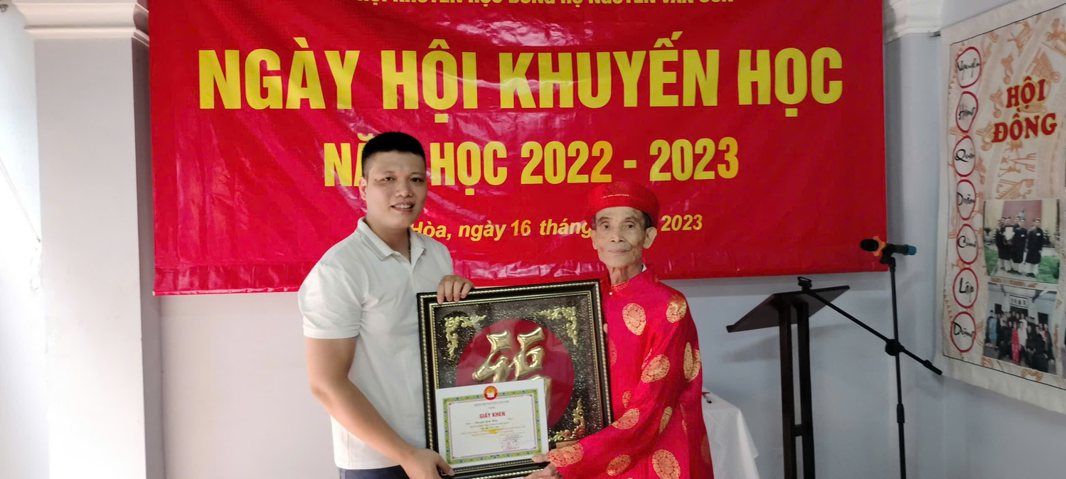 về truyền thống hiếu học của Dòng họ với các cháu học sinh Để tiếp nối và phát huy truyền thống hiếu học của cha ông, được sự quan tâm chỉ đạo của các cấp ủy, chính quyền địa phương và đặc biệt là của Hội đồng Gia tộc Dòng họ, năm 2002 Chi hội khuyến học của Dòng họ Nguyễn Vân Sơn được thành lập. Kể từ đó đến nay, trải qua hơn 20 năm hoạt động, công tác khuyến học, khuyến tài, xây dựng xã hội học tập tại địa phương của Dòng họ đã có được những kết quả tích cực, nhiều con cháu trong Dòng họ đã có được học hàm, học vị cao trong học tập, nghiên cứu khoa học phục vụ cho sự nghiệp xây dựng và bảo vệ Tổ quốc; trong đó có 02 Phó Giáo sư, Tiến sĩ; 24 Thạc sĩ, trong đó có 02 Nghiên cứu sinh, 200 Kỹ sư, Cử nhân và nhiều con cháu đang học Đại học, trên Đại học. Nhiều gia đình và cá nhân đã được các cấp khen tặng danh hiệu: “Gia đình học tập”, “Công dân học tập” tiêu biểu.