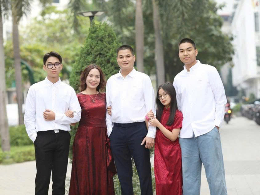 Con trai cả của tôi sinh năm 2001, cháu đã tốt nghiệp Đại học Anh quốc tại Việt Nam (BUV) và tự xin việc đi làm ở Malaysia đã gần 3 năm qua. Con trai thứ hai sinh năm 2007, hiện nay cháu là học sinh lớp 12 chuyên Toán A1, Trường THPT Chuyên Khoa học Tự nhiên. Cháu đã trúng tuyển Đại học Boston (Mỹ), dự kiến du học vào tháng 8/2025. Con gái út sinh năm 2015, hiện cháu là học sinh lớp 4 tại Trường Tiểu học Vinschool Gardenia.