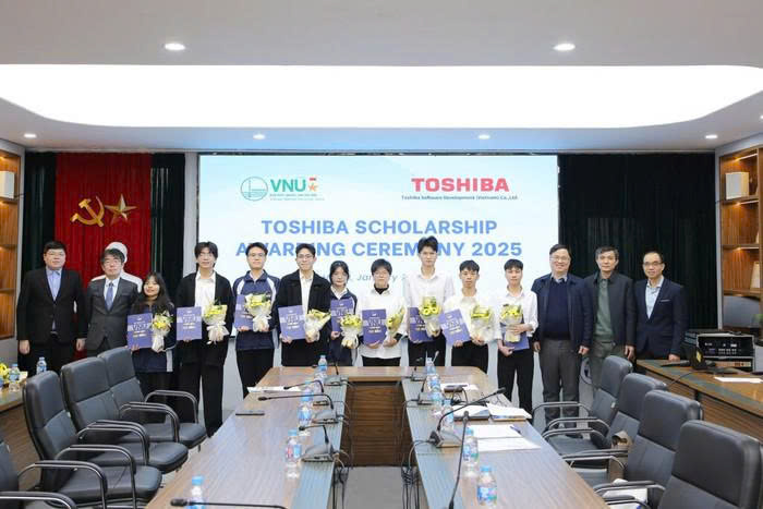 Tại Lễ trao học bổng Toshiba năm học 2025-2026 giữa Đại học Quốc gia Hà Nội và Quỹ học bổng Toshiba, Trường Đại học Công nghệ - Đại học Quốc gia Hà Nội có 10 sinh viên vinh dự được trao học bổng, chiếm một nửa trong tổng số 20 sinh viên được nhận học bổng đợt này.