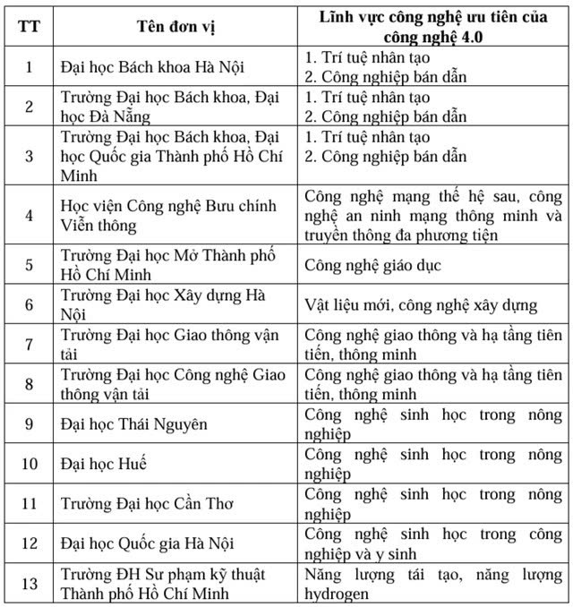 Các mạng lưới ở các tỉnh phía Nam dự kiến sẽ được công bố trong tuần sau. Dưới đây là danh sách đầy đủ 13 mạng lưới Trung tâm đào tạo xuất sắc và tài năng về công nghệ 4.0 trên phạm vi cả nước: