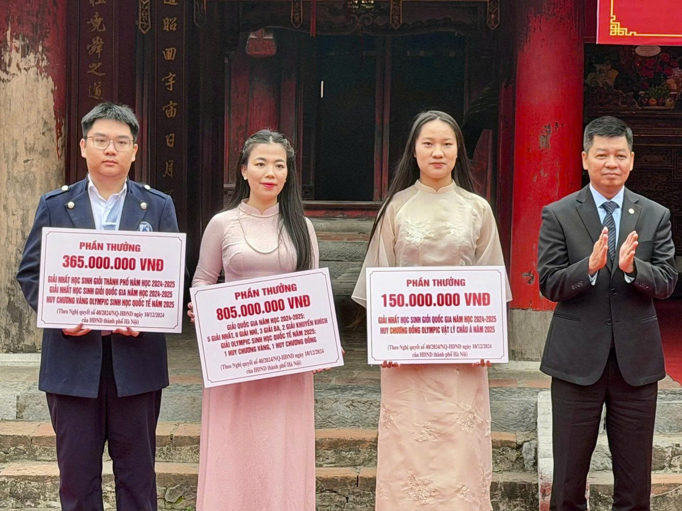 Nhóm thầy, cô giáo nhận mức thưởng 749 triệu đồng vì có thành tích bồi dưỡng 1 học sinh giành Huy chương Vàng Olympic Hoá học Quốc tế; bồi dưỡng học sinh đạt 5 giải Nhất, 6 giải Nhì, 6 giải Ba, 1 giải Khuyến khích trong kỳ thi học sinh giỏi Quốc gia, năm học 2024-2025.