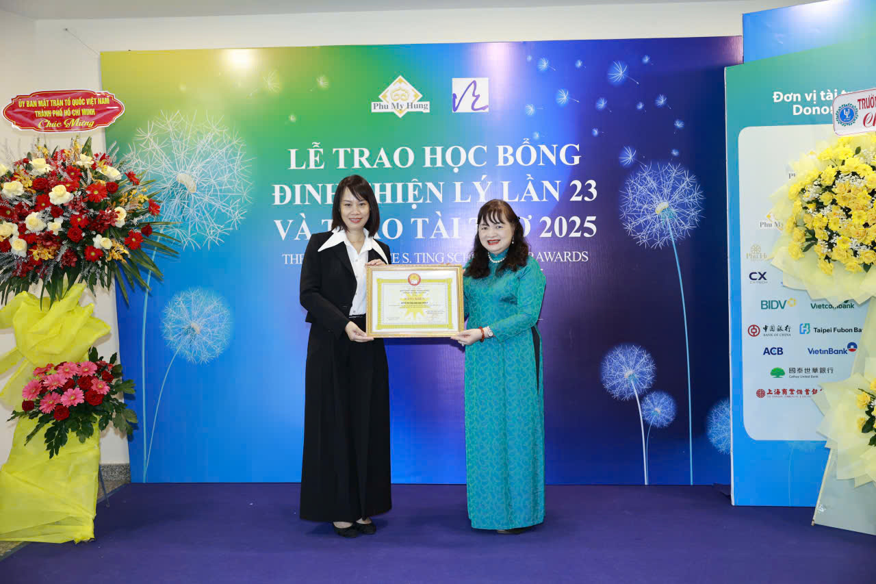Sáng ngày 11/10/2025, tại Thành phố Hồ Chí Minh, Công ty TNHH Phát triển Phú Mỹ Hưng và Quỹ Hỗ trợ Cộng đồng Đinh Thiện Lý đã tổ chức “Lễ trao học bổng Đinh Thiện Lý lần 23 và Trao tài trợ năm 2025”. Quỹ Hỗ trợ Cộng đồng Đinh Thiện Lý trao tặng Quỹ Khuyến học thành phố Hà Nội 100 triệu đồng.