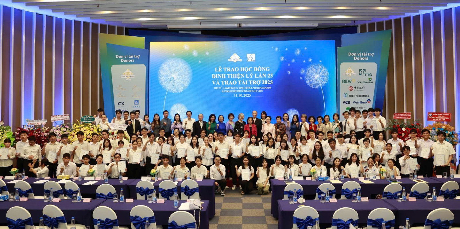 Tại buổi Lễ trao học bổng Đinh Thiện Lý lần thứ 23 và trao tài trợ 2025, Ban Tổ chức đã trao gần 8,8 tỷ đồng bao gồm học bổng trực tiếp và học bổng gián tiếp cho các em học sinh, sinh viên. Đối với học bổng trực tiếp, năm nay có 113 suất, với tổng số tiền gần 3,8 tỷ đồng để hỗ trợ toàn bộ học phí trong một năm học cho các sinh viên tại 10 trường đại học có hoàn cảnh khó khăn, đạt thành tích học tập xuất sắc và tham gia tích cực các hoạt động cộng đồng.