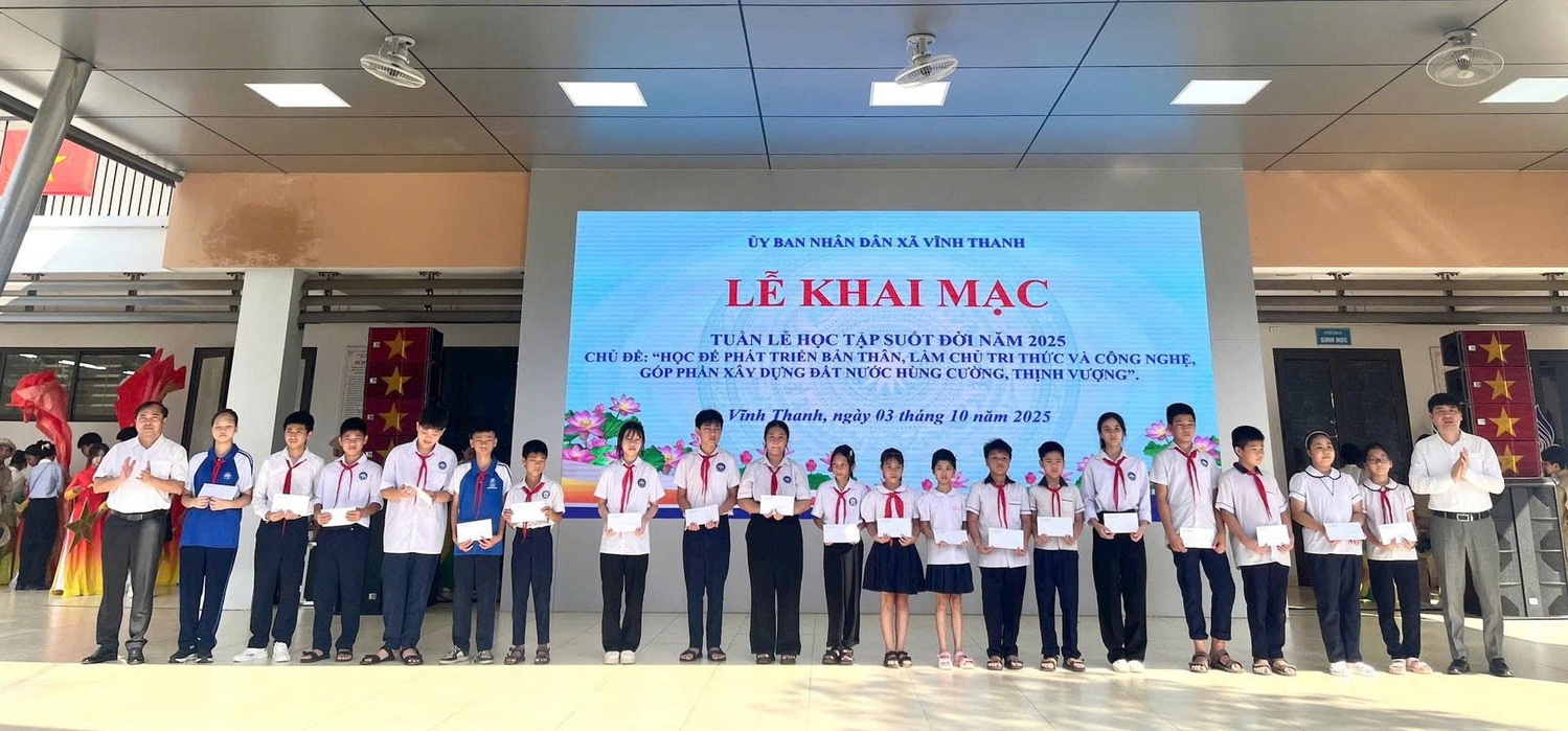 Sáng ngày 3/10/2025, UBND xã Vĩnh Thanh khai mạc Tuần lễ hưởng ứng học tập suốt đời năm 2025, với chủ đề “Học để phát triển bản thân, làm chủ tri thức và công nghệ, góp phần xây dựng đất nước hùng cường, thịnh vượng”.