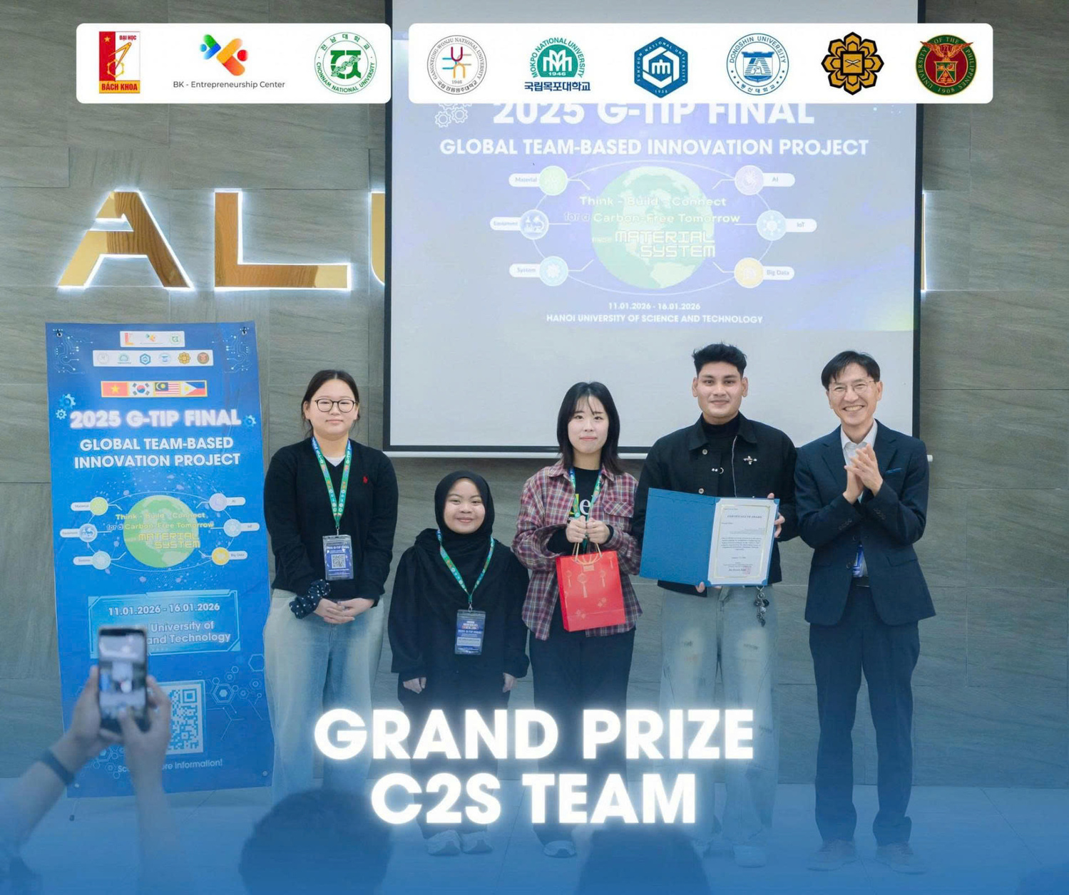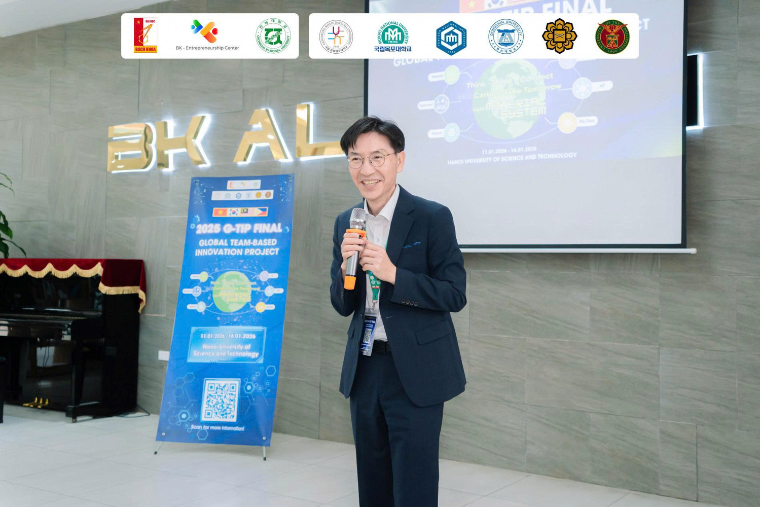 Ngày 12/1, Đại học Bách khoa Hà Nội phối hợp cùng Đại học Quốc gia Chonnam (Hàn Quốc) khai mạc Vòng Chung kết Cuộc thi “Đổi mới Sáng tạo Quốc tế G-TIP 2025”. Đây là Dự án Capstone thiết kế toàn cầu kết hợp thi đấu quốc tế, nơi các sinh viên Việt Nam, Hàn Quốc, Malaysia và Philippines làm việc và sáng tạo các dự án với chủ đề: Think, Build, Connect for a Carbon-free Tomorrow: From Material to System.