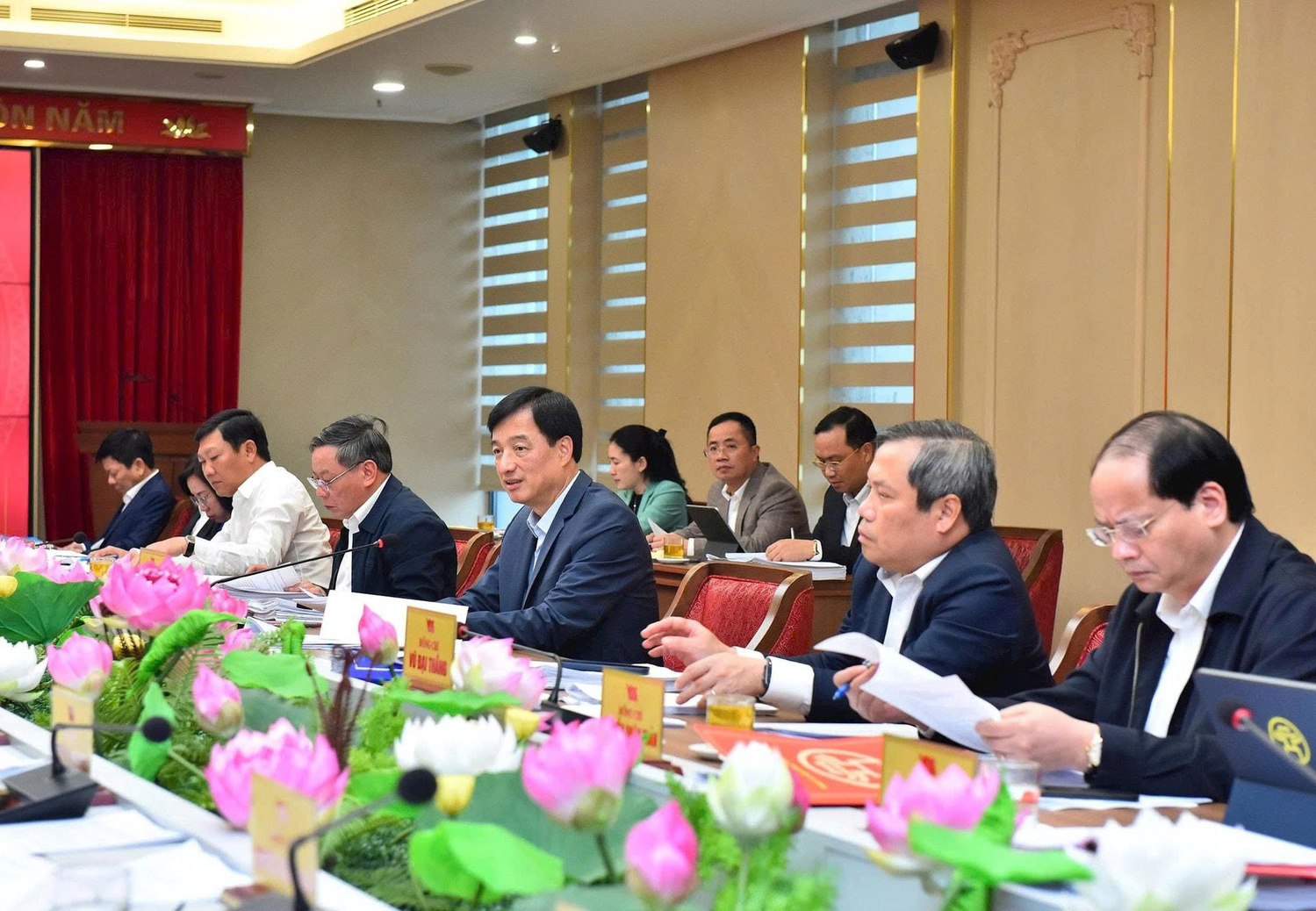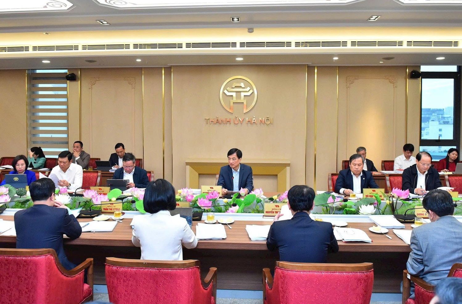 Chủ trì có các đồng chí: Ủy viên Bộ Chính trị, Bí thư Thành ủy Hà Nội Nguyễn Duy Ngọc; Ủy viên Trung ương Đảng, Phó Bí thư Thành ủy, Chủ tịch UBND thành phố Hà Nội Vũ Đại Thắng; Ủy viên Trung ương Đảng, Phó Bí thư Thường trực Thành ủy Hà Nội Nguyễn Trọng Đông; Phó Bí thư Thành ủy, Chủ tịch HĐND thành phố Hà Nội Phùng Thị Hồng Hà; Phó Bí thư Thành ủy Hà Nội Nguyễn Văn Phong. Cùng dự cuộc họp có các đồng chí trong Ban Thường vụ Thành ủy Hà Nội và đại diện lãnh đạo một số sở, ban, ngành liên quan.