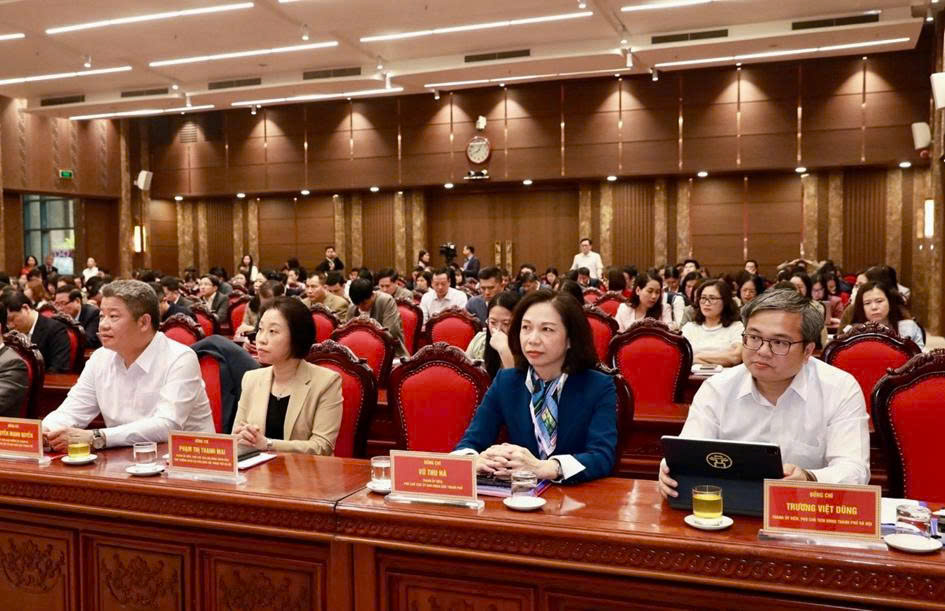 Các đại biểu dự hội nghị tại điểm cầu Thành ủy Hà Nội. Ảnh: Viết Thành