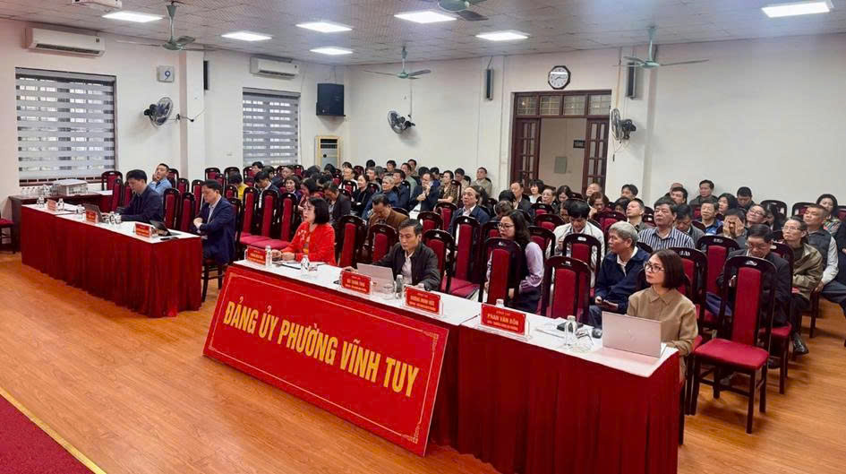 Các đại biểu dự tại điểm cầu phường Vĩnh Tuy (Hà Nội). Ảnh: Viết Thành