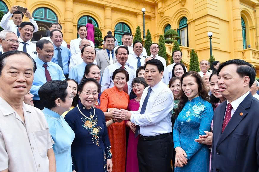 Chủ tịch nước Lương Cường và các đại biểu Hội Khuyến học tiêu biểu toàn quốc