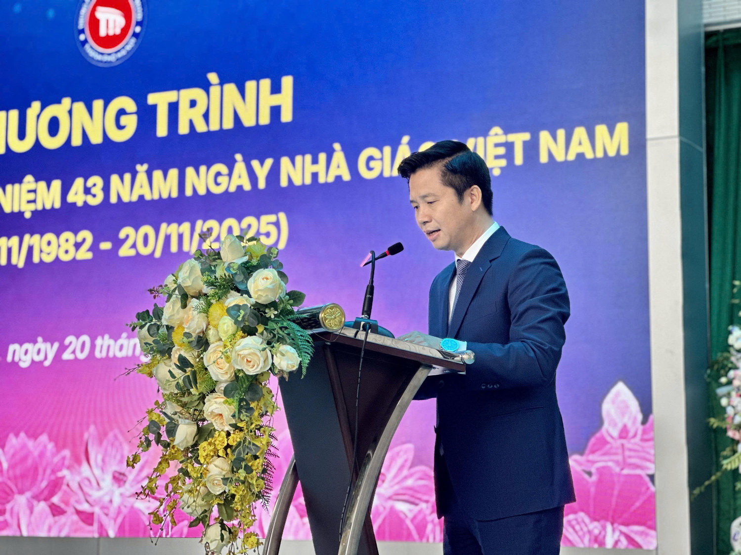 Thầy Hiệu trưởng trình bầy diễn văn kỷ niệm Ngày Nhà giáo Việt Nam 20/11 Thầy nhấn mạnh: dù đối mặt với nhiều thách thức của chương trình giáo dục mới, áp lực từ phụ huynh và xã hội, nhưng mỗi thầy cô vẫn giữ được tình yêu nghề bền bỉ, luôn tận tâm với học trò. Hình ảnh người thầy thời chiến “dưới hầm sâu vẫn là chiến sĩ” được thầy ví như biểu tượng tiếp nối đến hôm nay – khi người giáo viên vẫn tiếp tục chiến đấu trên “mặt trận tri thức” để mở đường cho tương lai của học sinh.