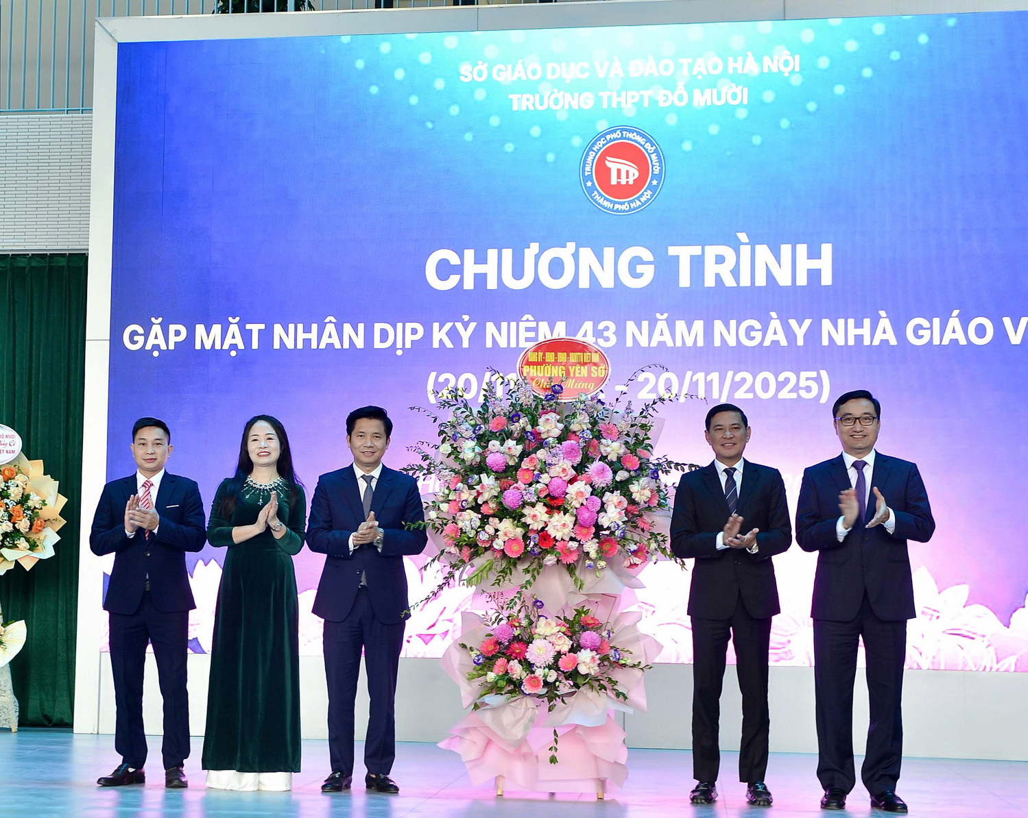 Đại diện lãnh đạo phường Yên Sở phát biểu tại Lễ kỷ niệm Buổi lễ trở nên lắng đọng khi Thầy Hiệu trưởng chia sẻ về 5 giá trị cốt lõi của trường: “Yêu thương - Tôn trọng - An toàn - Được hiểu - Có giá trị” và khẳng định quyết tâm xây dựng Trường THPT Đỗ Mười là ‘Trường học hạnh phúc’ - Nơi thầy cô hết lòng tận tụy, học sinh được thấu hiểu và phát triển toàn diện.