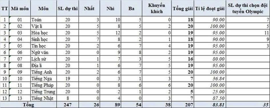 Bảng thống kê kết quả kỳ thi chọn học sinh giỏi quốc gia THPT
