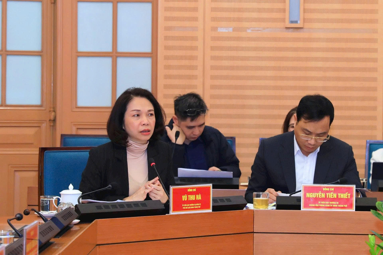 Phó Chủ tịch UBND thành phố Hà Nội Vũ Thu Hà phát biểu tại hội nghị