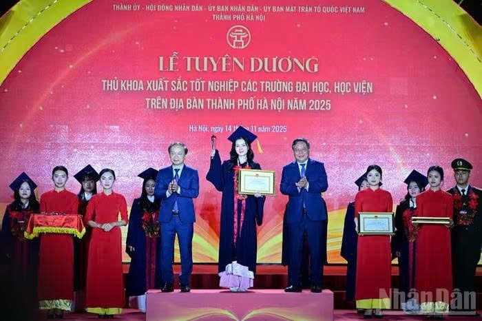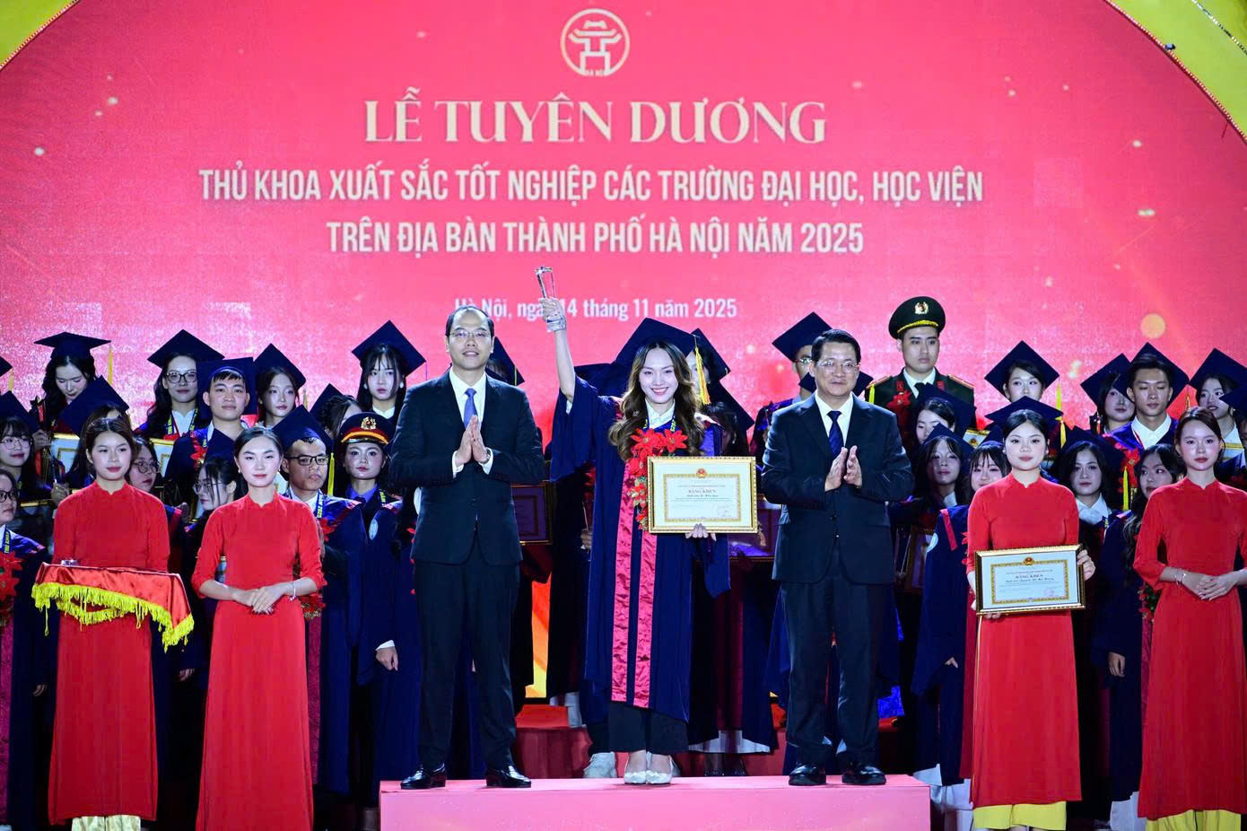 Tối ngày 14/11, tại Di tích Quốc gia đặc biệt Văn Miếu - Quốc Tử Giám, Thành ủy - Hội đồng Nhân dân - Ủy ban nhân dân - Uỷ ban Mặt trận Tổ quốc Việt Nam thành phố Hà Nội tổ chức “Lễ tuyên dương Thủ khoa xuất sắc tốt nghiệp các trường Đại học, Học viện trên địa bàn Thủ đô Hà Nội năm 2025”.