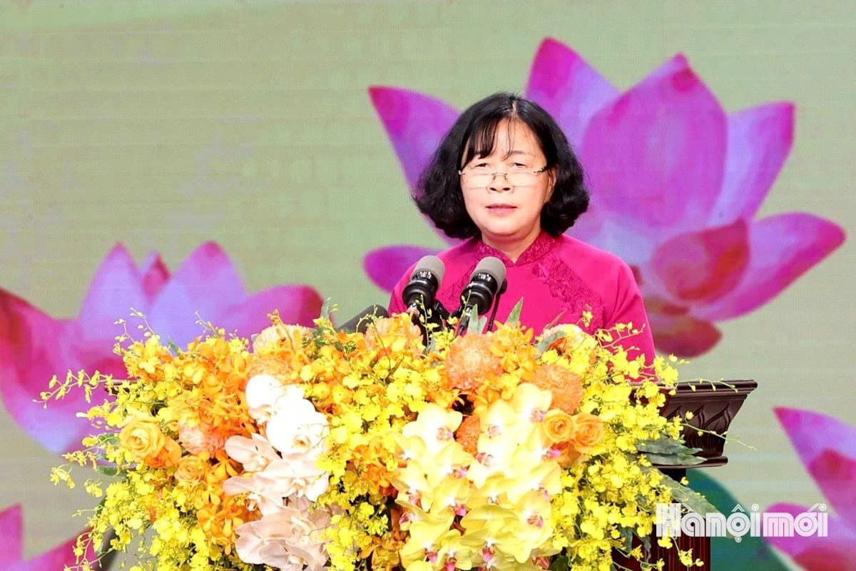 Bí thư Thành ủy Hà Nội Bùi Thị Minh Hoài phát biểu tại Lễ công bố