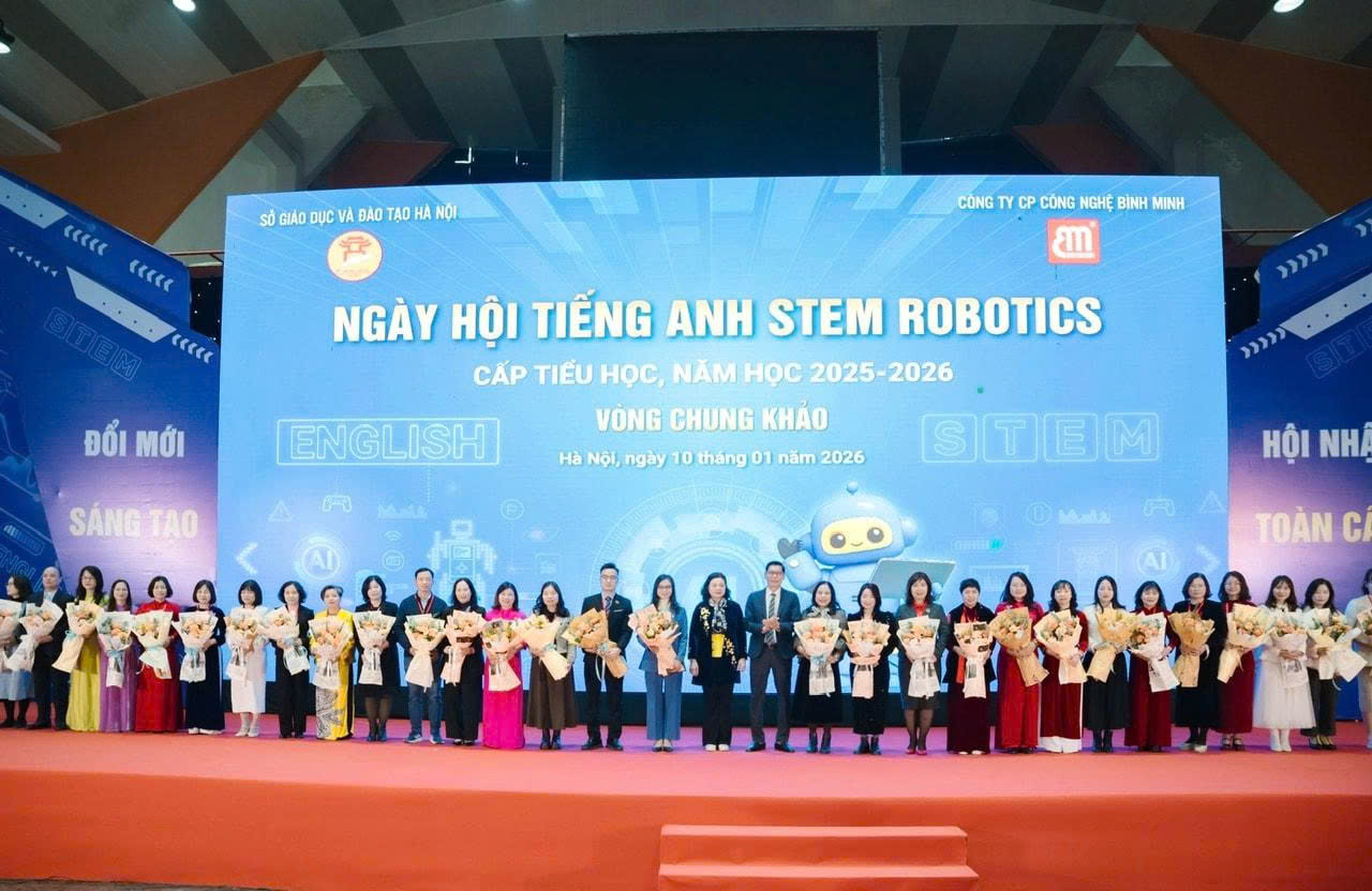 Ngày 10/01/2026, vòng chung khảo chương trình “Ngày hội Tiếng Anh STEM Robotics” cấp tiểu học thành phố Hà Nội năm học 2025-2026 chính thức diễn ra. Chương trình do Sở Giáo dục và Đào tạo Hà Nội phối hợp với Công ty Cổ phần Công nghệ Bình Minh tổ chức, là sân chơi học thuật hiện đại dành cho học sinh tiểu học, trong đó tiếng Anh được tích hợp với STEM, công nghệ và robotics, tạo điều kiện để học sinh phát huy tư duy, năng lực sáng tạo và sự tự tin trong bối cảnh hội nhập và chuyển đổi số.