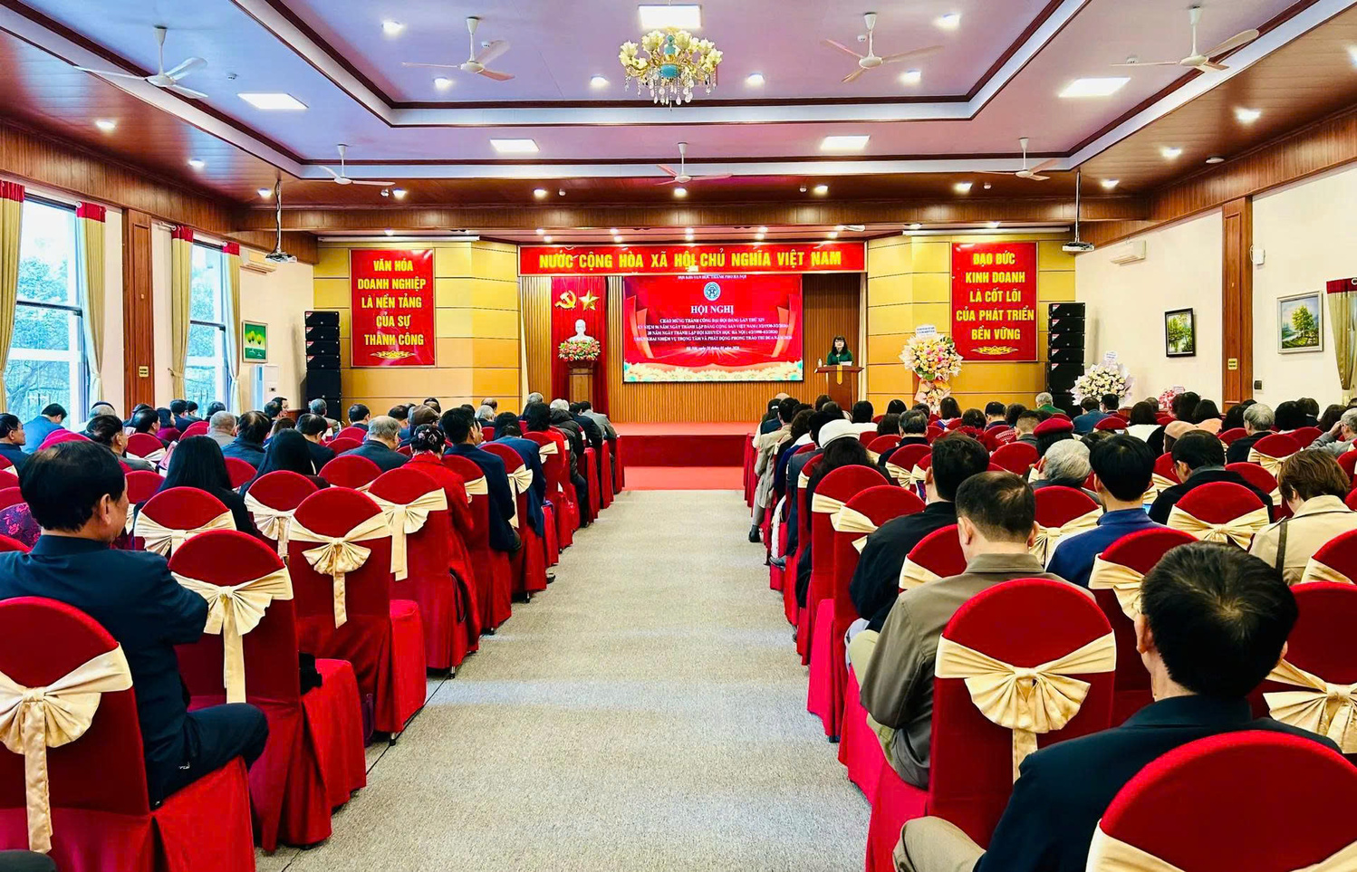 Quang cảnh Hội nghị Chủ đề của Đại hội IV của Đảng: “Dưới lá cờ vẻ vang của Đảng, chung sức, đồng lòng quyết tâm thực hiện thắng lợi các mục tiêu phát triển đất nước đến năm 2030; tự cường, tự tin, tiến mạnh trong kỷ nguyên vươn mình của dân tộc, vì hòa bình, độc lập, dân chủ, giàu mạnh, phồn vinh, văn minh, hạnh phúc, vững bước đi lên chủ nghĩa xã hội”.