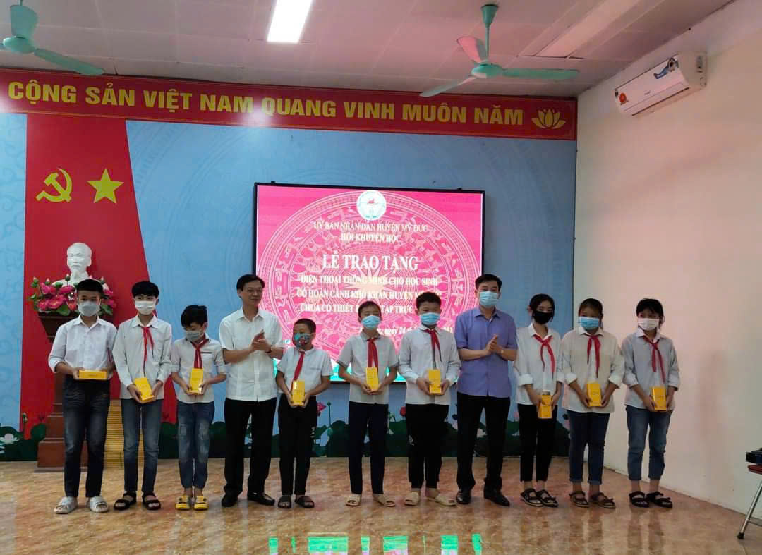 Lãnh đạo Hội Khuyến học huyện Mỹ Đức trao tặng điện thoại thông minh