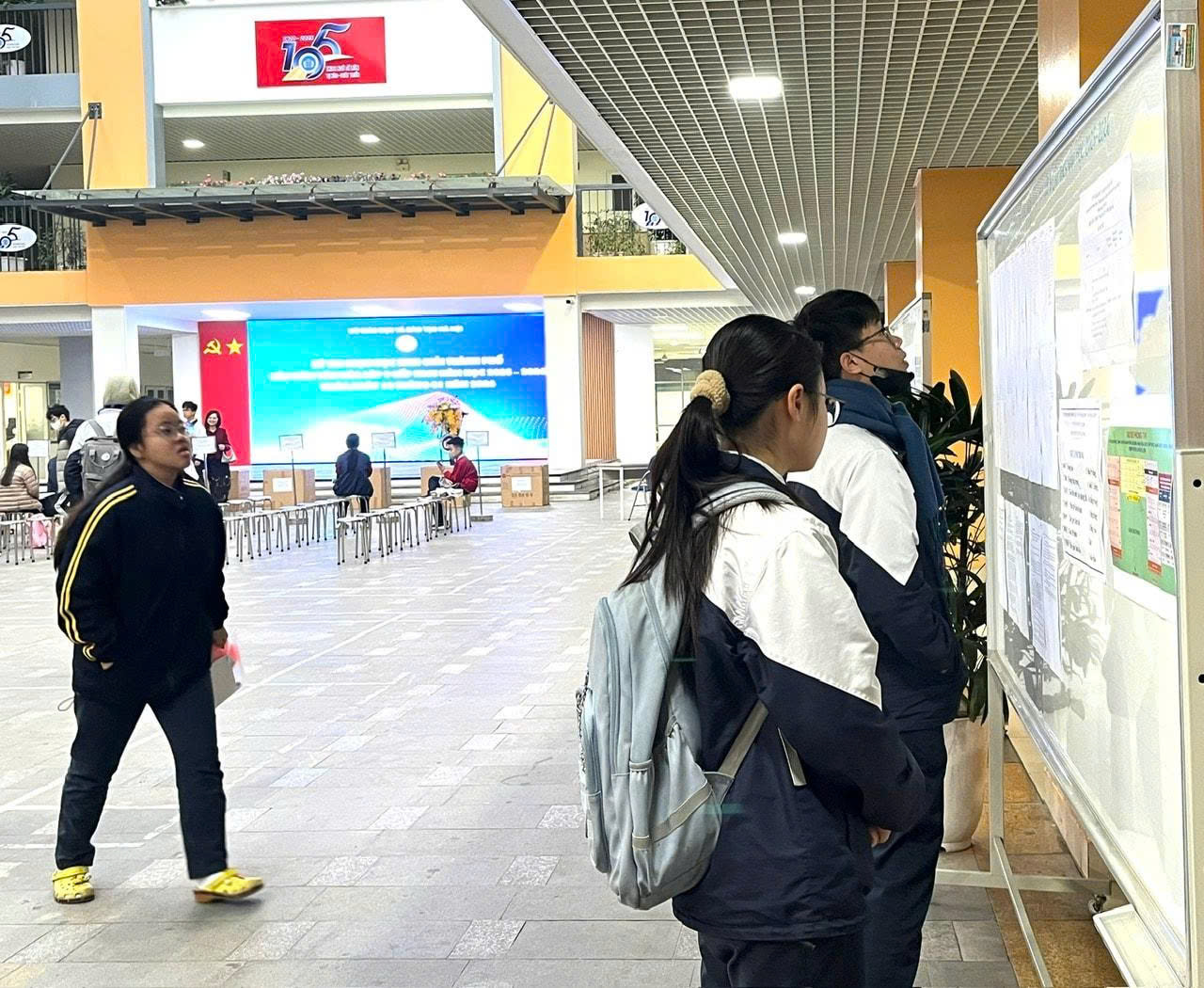 Thí sinh xem sơ đồ phòng thi. Ảnh: Lê Nguyễn