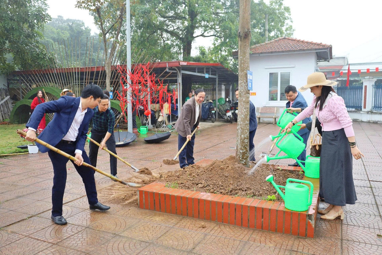 Các đại biểu đã tiến hành trồng 1 cây bóng mát và 4 cây ăn quả