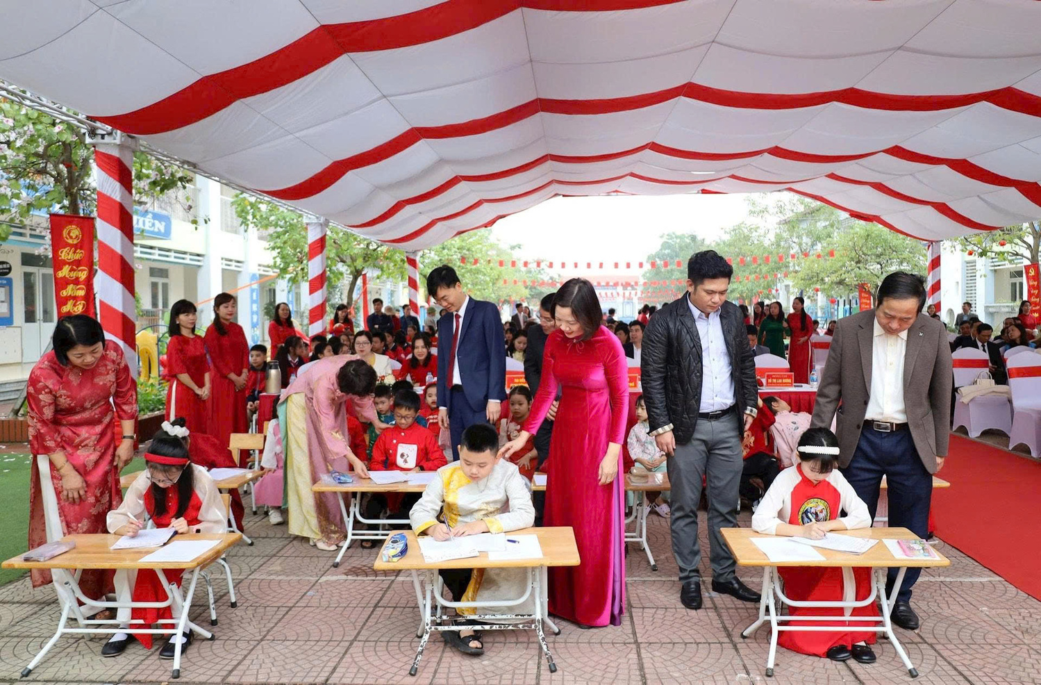 Ngay sau nghi thức khai bút đầu năm là Cuộc thi Viết chữ đẹp Xuân Bính Ngọ với sự tranh tài của 15 em học sinh tiêu biểu đến từ 5 Trường Tiểu học, đại diện cho hơn 3.000 học sinh khối Tiểu học trên địa bàn phường. Kết quả chung cuộc, em Hoàng Khánh Quyên - Học sinh Trường Tiểu học Trung Sơn Trầm đã xuất sắc giành giải Nhất. Ban Tổ chức cũng đã trao 2 giải Nhì và 12 giải Ba nhằm động viên, khích lệ tinh thần rèn chữ, giữ vở của các em học sinh.