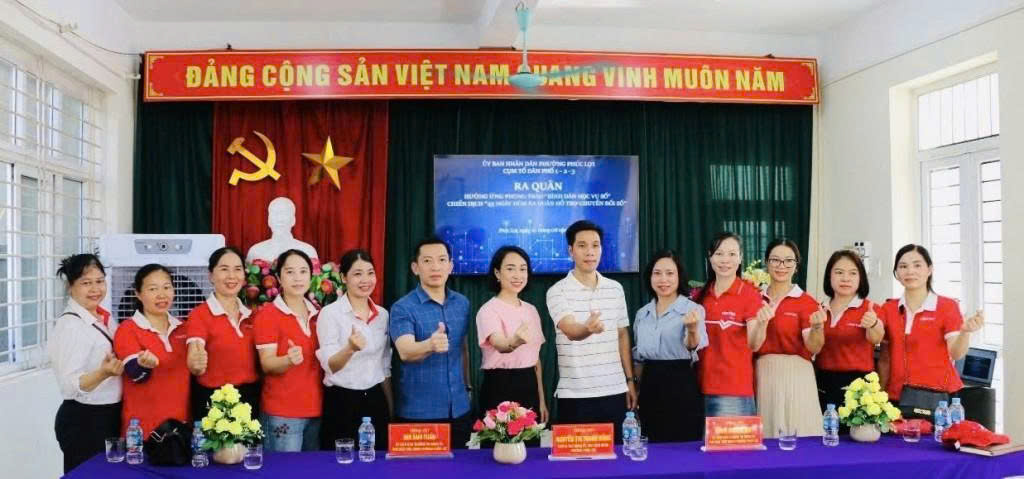 Dự buổi ra quân tại Điểm bình dân học vụ số tổ 1+2+3 phường Phúc Lợi vào sáng ngày 09/8/2025 có các đồng chí: Nguyễn Thị Thanh Hằng - Phó Bí thư Đảng ủy, Chủ tịch UBND phường; Tăng Quang Huy - UVTV Đảng ủy, Phó Chủ tịch HĐND phường; Bùi Anh Tuấn - UVTV, Phó Chủ tịch UBND phường cùng các đồng chí trong Ban Chấp hành Đảng bộ, Thường trực Ủy ban MTTQ, trưởng các tổ chức chính trị - xã hội; Trưởng các phòng chuyên môn. Đại biểu tổ dân phố có các ông bà là Tổ trưởng các tổ chuyển đổi số cộng đồng của 44 tổ dân phố thuộc phường Phúc Lợi; các ông bà là Bí thư Chi bộ, Tổ trưởng tổ dân phố, Trưởng ban CTMT, thành viên Tổ chuyển đổi số cộng đồng và đông đảo Nhân dân thuộc cụm Tổ dân phố 1+2+3.
