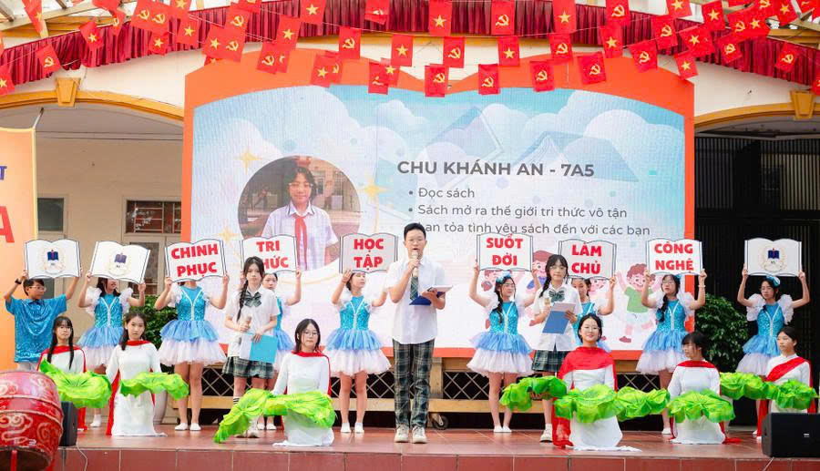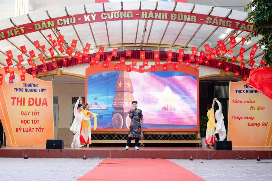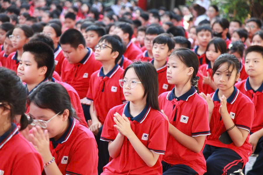 Học sinh Trường THCS Hoàng Liệt tràn ngập trong sắc đỏ