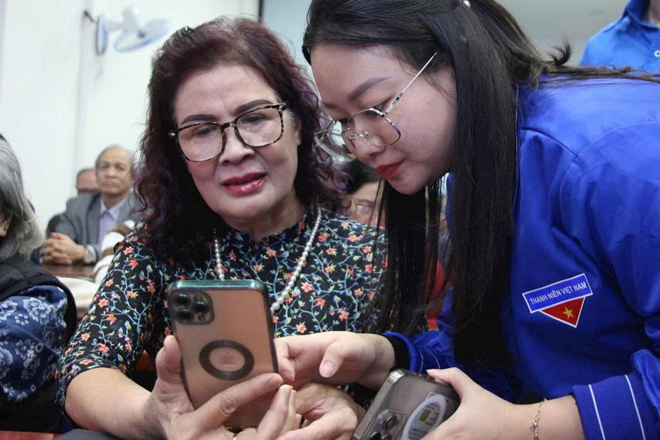 hướng dẫn bà Nguyễn Thị Bích Vân sử dụng ứng dụng