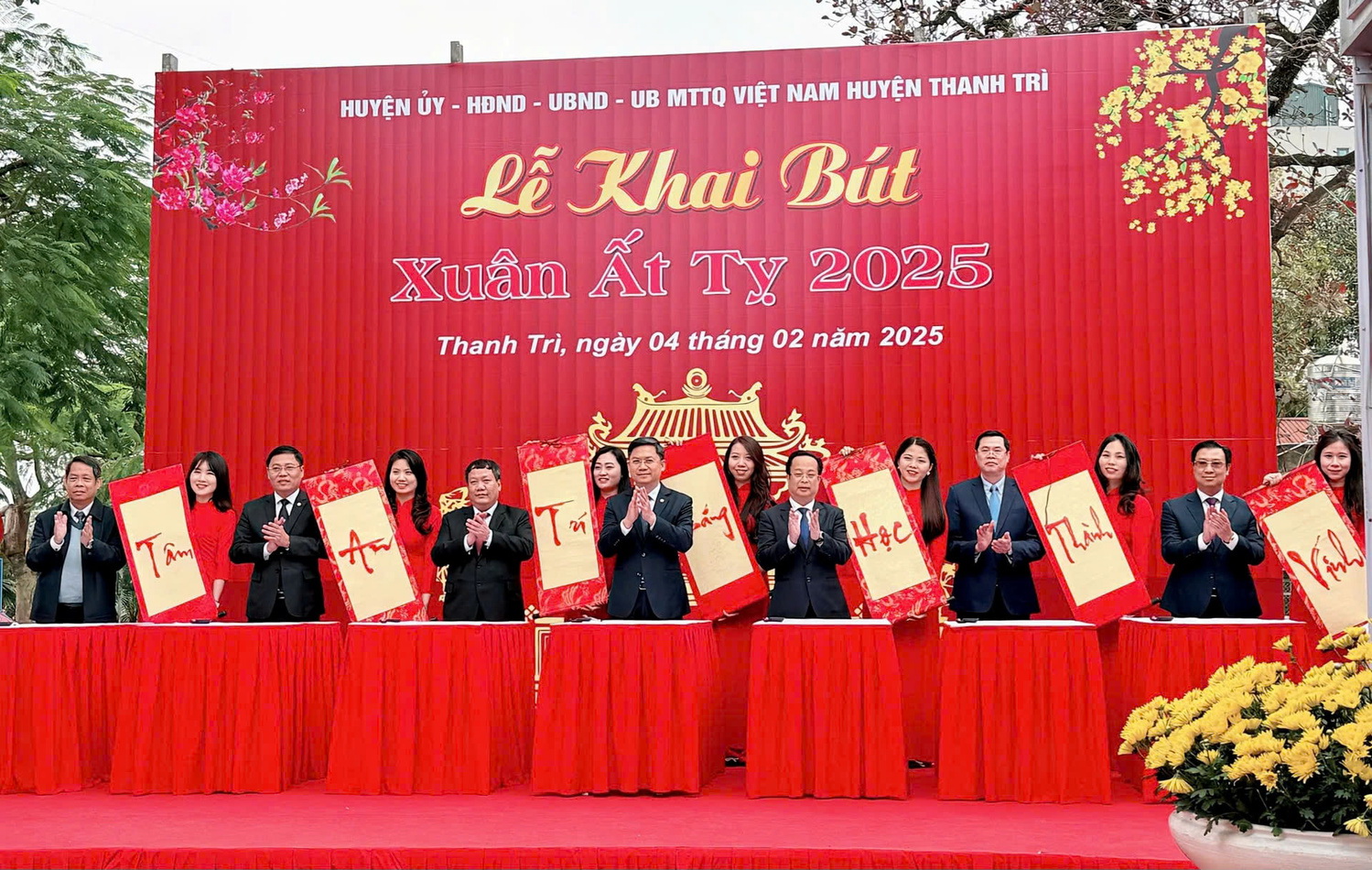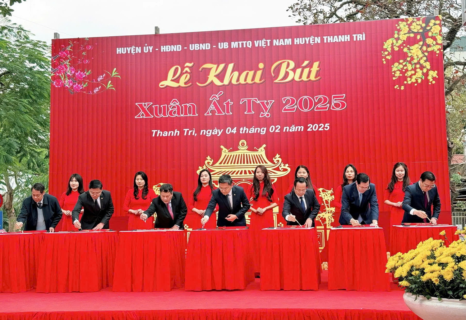 và thành phố Chí Linh (tỉnh Hải Dương) thực hiện nghi lễ khai bút đầu xuân Ất Tỵ 2025 Theo Chủ tịch UBND huyện Thanh Trì Nguyễn Xuân Phong: Năm 2025 là năm tiến hành Đại hội Đảng các cấp, tiến tới Đại hội Đảng bộ thành phố Hà Nội lần thứ XVIII, Đại hội đại biểu toàn quốc lần thứ XIV của Đảng với định hướng và tư tưởng của Đảng về kỷ nguyên mới - kỷ nguyên vươn mình của dân tộc. Năm tập trung quyết liệt hoàn thành và bảo đảm xong 34/34 tiêu chí xây dựng huyện thành quận.