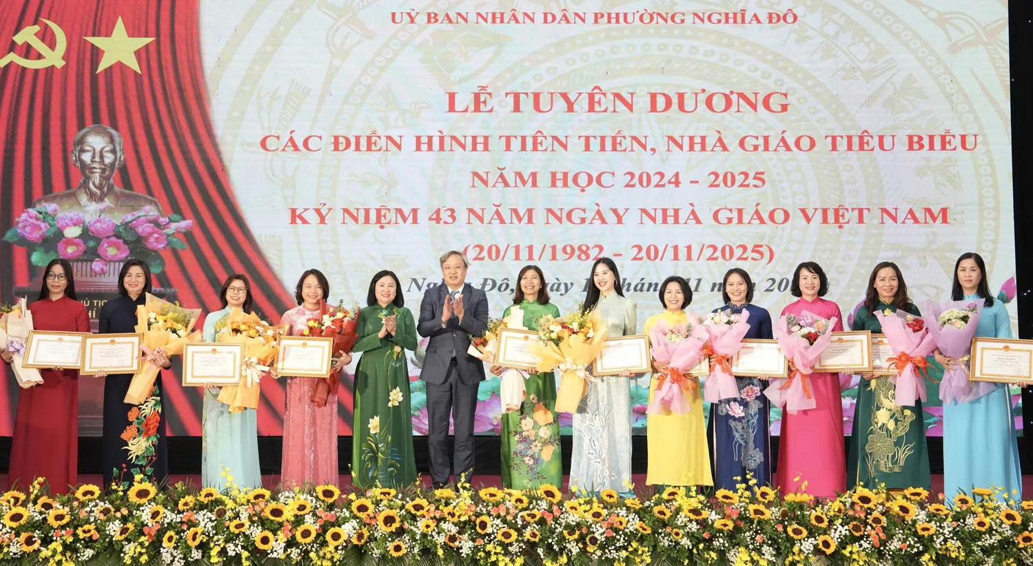 Bên cạnh thành tích tập thể, phường Nghĩa Đô cũng vinh danh nhiều nhà giáo tiêu biểu có đóng góp sâu sắc như: Tiến sĩ Nguyễn Văn Hòa - Chủ tịch Hội đồng Trường THCS-THPT Nguyễn Bỉnh Khiêm được trao danh hiệu “Công dân Ưu tú Thủ đô”. Nhà giáo Ưu tú Vũ Ngọc Dự - Hiệu trưởng Mầm non Ánh Sao đón nhận Huân chương Lao động hạng Nhì. Nhà giáo Nguyễn Thị Như Quỳnh - Trường Mầm non Hoa Hồng và Nhà giáo Hà Thị Thanh Bình - Trường Mầm non Quan Hoa đón nhận Huân chương Lao động hạng Ba. Nhà giáo Trương Thị Thu Hiền - Hiệu trưởng THCS Nghĩa Tân và Nhà giáo Nguyễn Thị Dung - Giáo viên Trường Mầm non Hoa Hồng đón nhận Bằng khen Thủ tướng Chính phủ.
