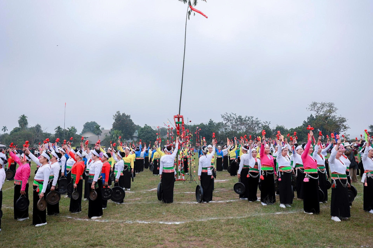 Sau phần diễn xướng chiêng, chương trình nghệ thuật chào Xuân Bính Ngọ 2026 diễn ra với nhiều tiết mục đặc sắc, như hát giao duyên “Trầu cau”, các tiết mục múa mang âm hưởng dân gian Mường, đơn ca ca ngợi Đảng và quê hương, cùng tiết mục hát múa “Khúc cầu mùa” thể hiện ước vọng về một năm mới thuận lợi, mùa màng bội thu. Các tiết mục được dàn dựng công phu, thu hút đông đảo nhân dân theo dõi, cổ vũ.