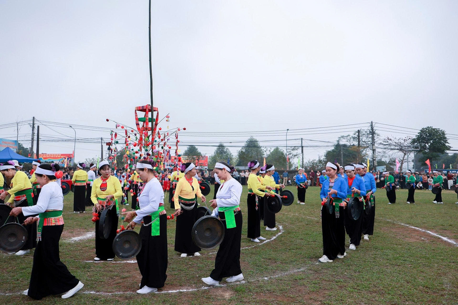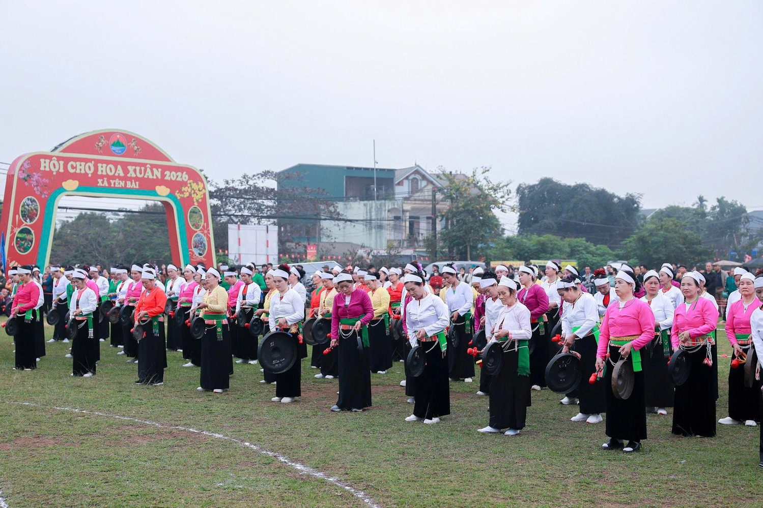 Không khí chương trình nghệ thuật chào Xuân tại Hội Xuân Yên Bài Điểm nhấn của chương trình là màn diễn xướng chiêng Mường với sự tham gia của 18 đội chiêng đến từ các thôn trong xã - một nét sinh hoạt văn hoá đặc trưng, góp phần gìn giữ giá trị truyền thống của đồng bào Mường trên địa bàn.