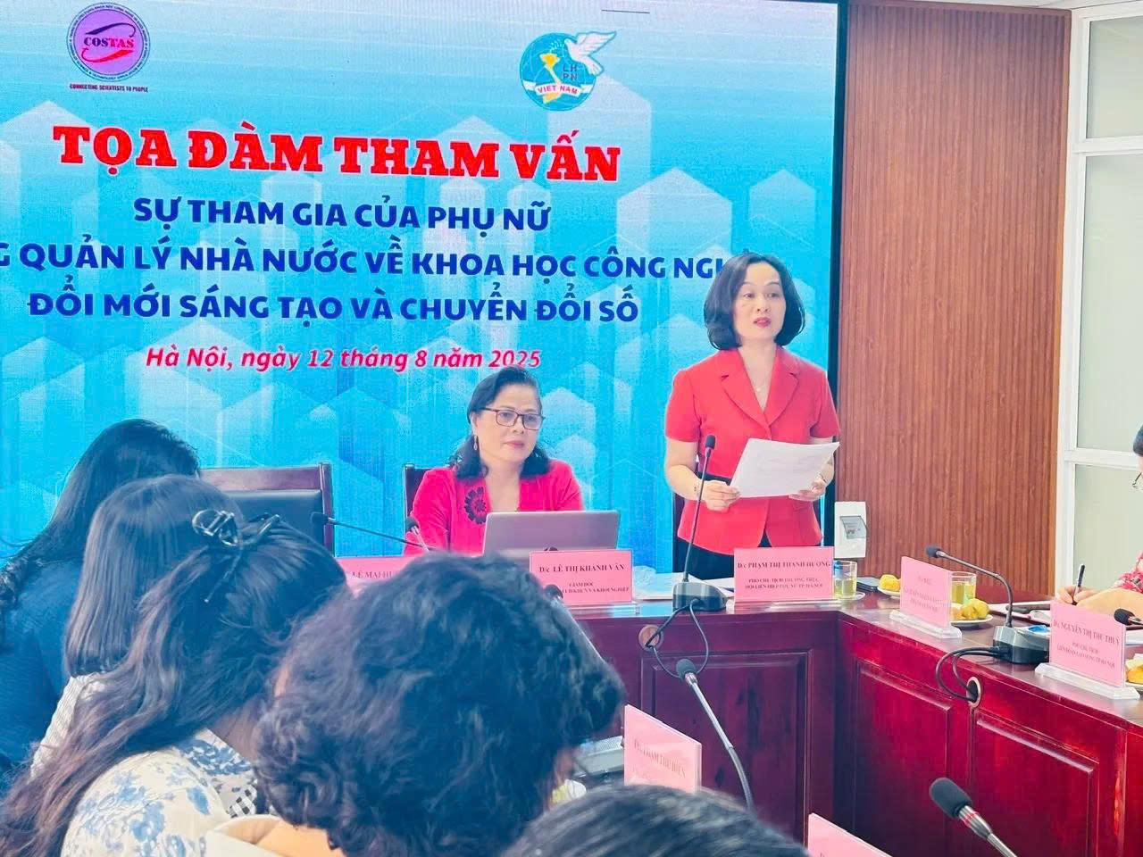 Ngày 12/8/2025, Hội Liên hiệp Phụ nữ (LHPN) Hà Nội phối hợp với Trung tâm Ứng dụng khoa học công nghệ và Khởi nghiệp (Hội Nữ trí thức Việt Nam) tổ chức tọa đàm tham vấn sự tham gia của phụ nữ trong quản lý Nhà nước về khoa học công nghệ, đổi mới sáng tạo và chuyển đổi số.
