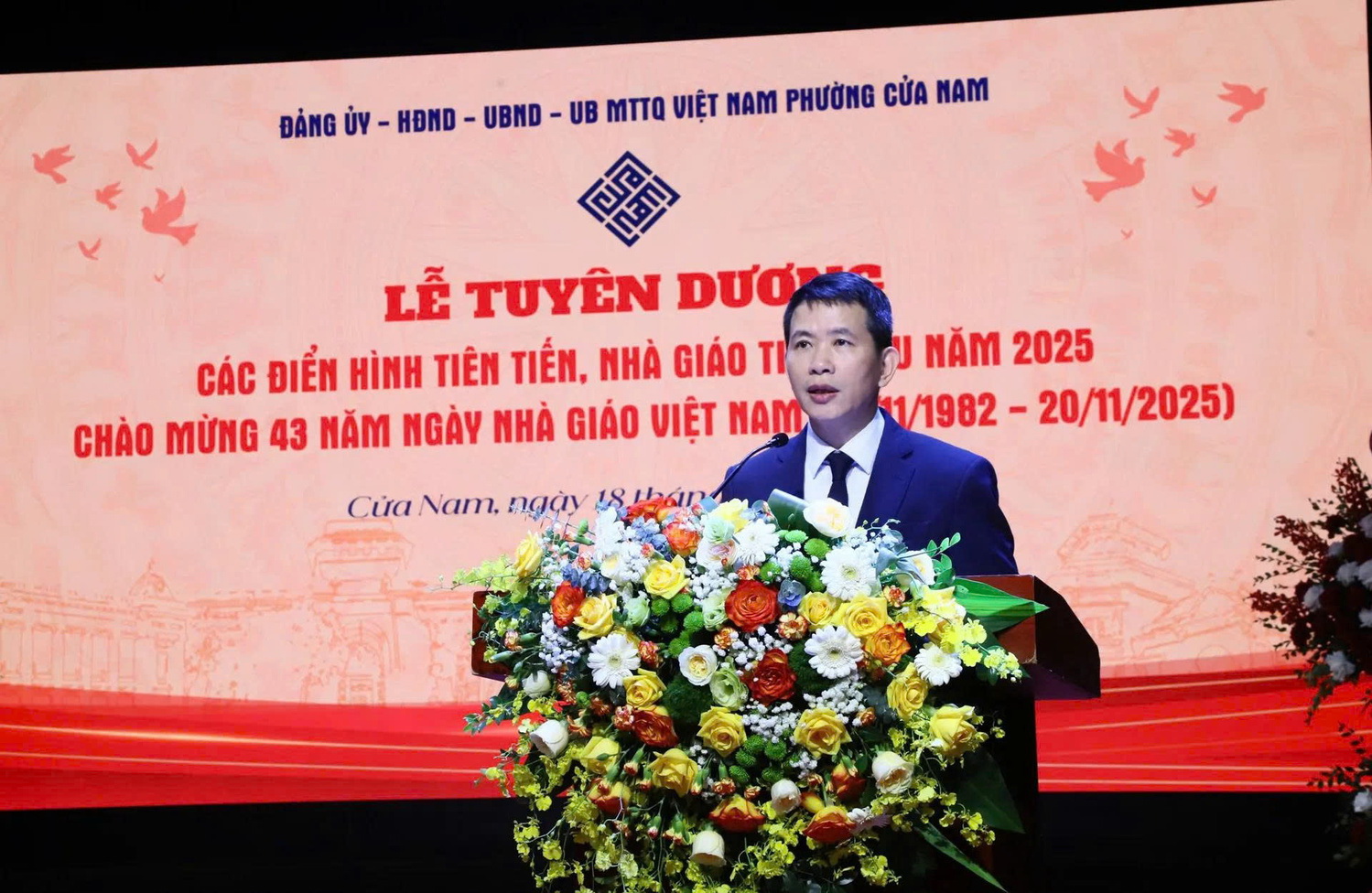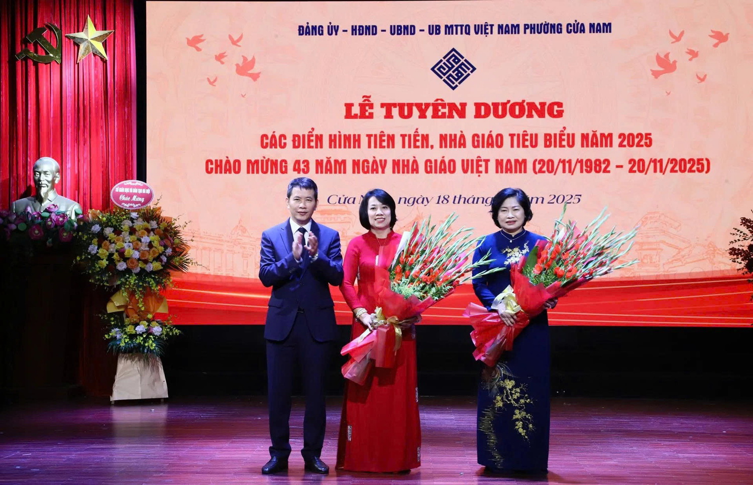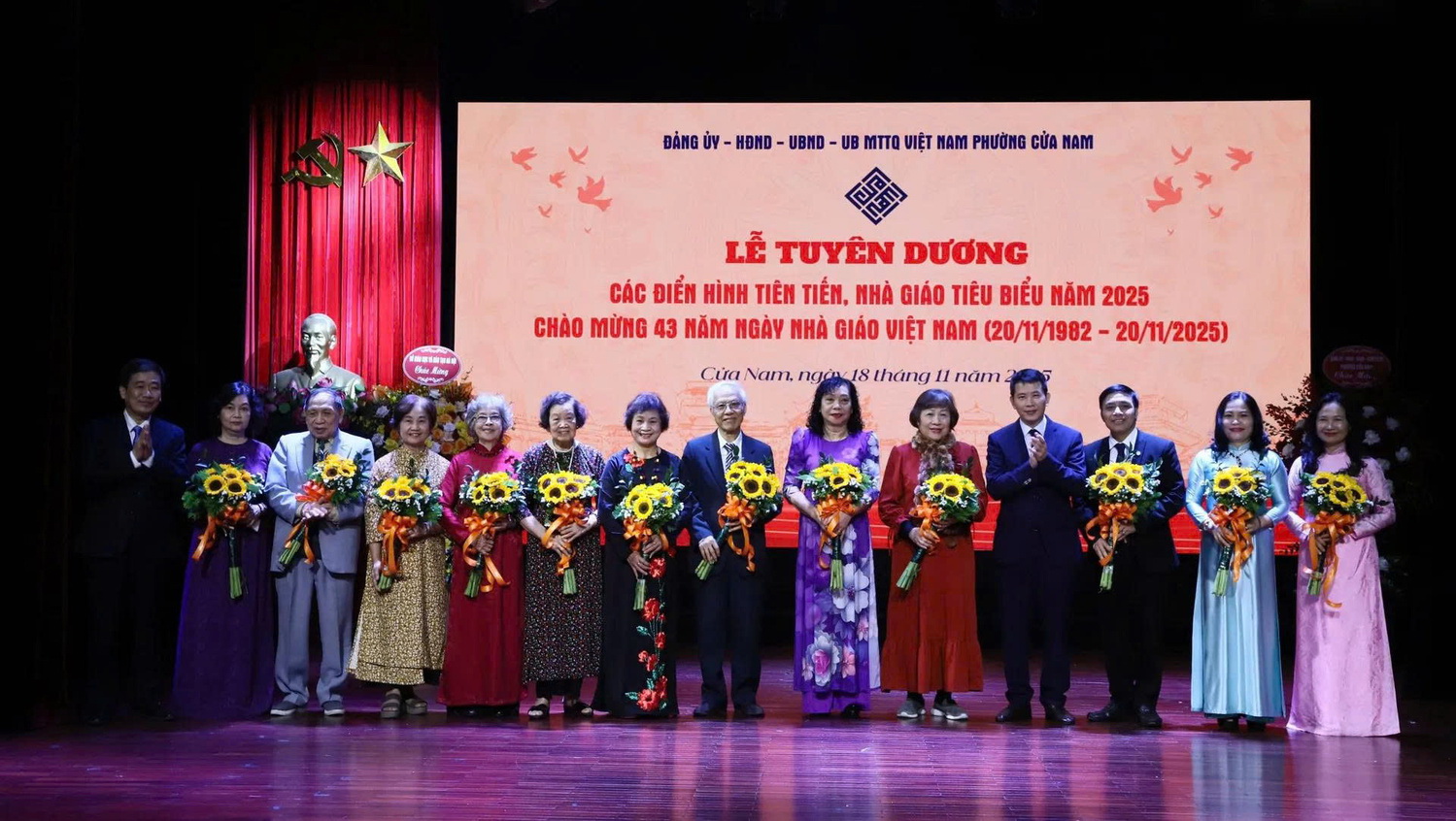 Trong không khí chào mừng kỷ niệm 43 năm Ngày Nhà giáo Việt Nam (20/11/1982-20/11/2025), sáng ngày 18/11, phường Cửa Nam tổ chức Lễ tuyên dương các điển hình tiên tiến, nhà giáo tiêu biểu năm 2025.