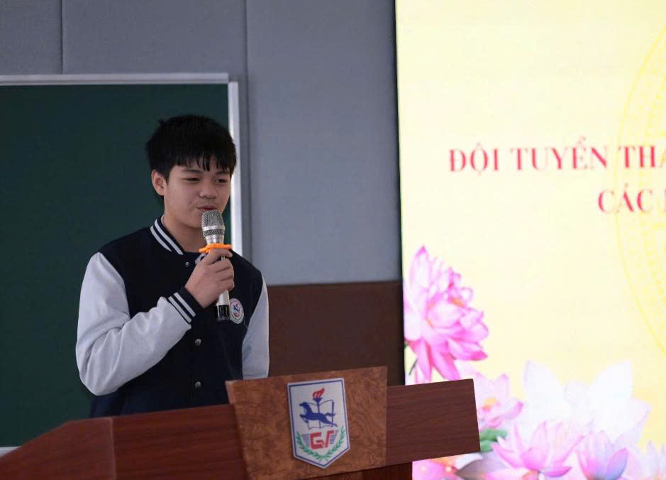 Đại diện cho 82 học sinh của đội tuyển, em Vũ Đình Minh Tân - Học sinh lớp 9A2 Trường THCS Giảng Võ, đội tuyển môn Toán đã bày tỏ lòng biết ơn sâu sắc trước sự quan tâm của các cấp lãnh đạo, thầy, cô giáo và hứa sẽ nỗ lực hết mình, thể hiện quyết tâm đạt kết quả cao nhất trong kỳ thi tới.