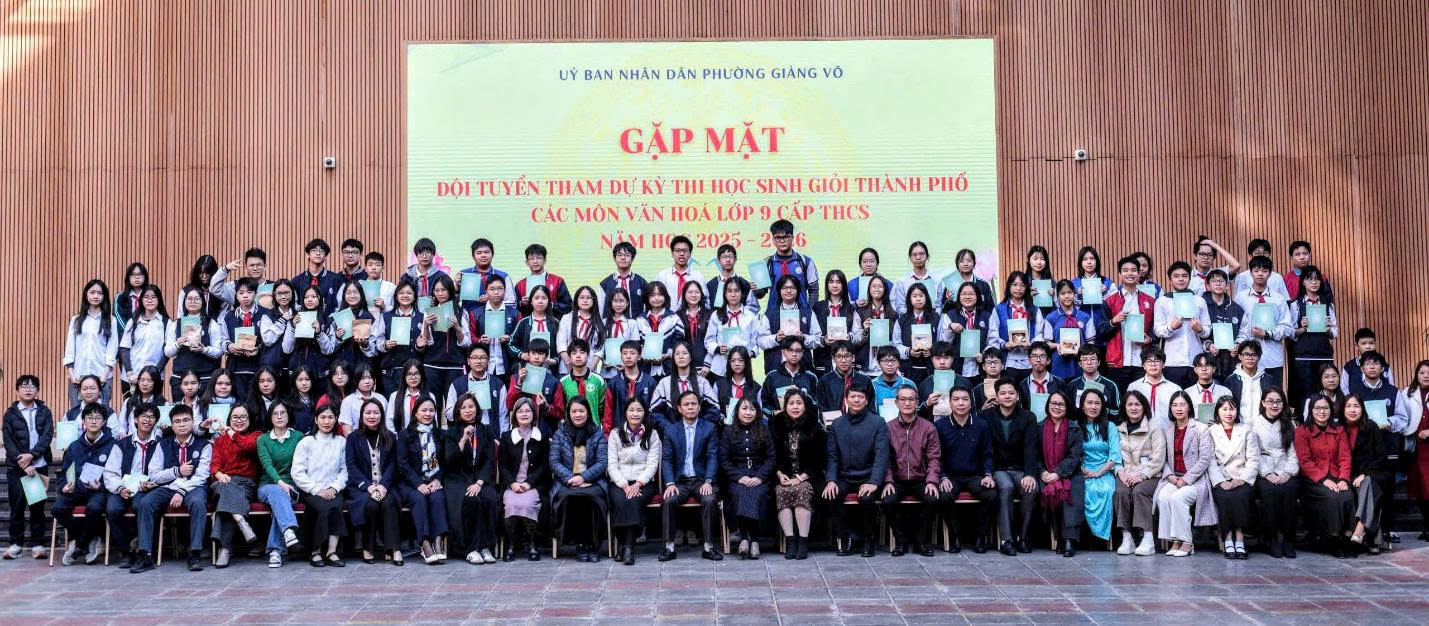 Trong không khí hân hoan của những ngày đầu năm mới 2026 và chuẩn bị đón Tết Nguyên đán Bính Ngọ, chiều ngày 07/01/2026, tại Trường Trung học cơ sở Giảng Võ, Uỷ ban nhân dân phường Giảng Võ đã tổ chức buổi gặp mặt đầy ý nghĩa nhằm động viên, tiếp sức cho 82 học sinh ưu tú trước kỳ thi chọn học sinh giỏi lớp 9 cấp Thành phố.