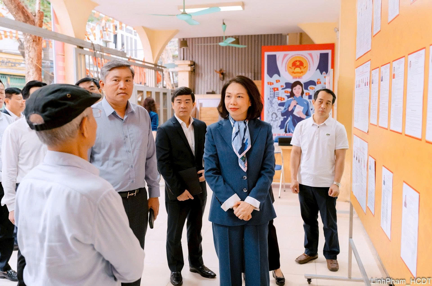 Trước khi làm việc tại trụ sở UBND phường Hồng Hà, Phó Chủ tịch UBND thành phố Hà Nội Vũ Thu Hà đã trực tiếp kiểm tra việc bố trí bàn ghế, khu vực niêm yết danh sách cử tri, danh sách và tiểu sử tóm tắt người ứng cử; vị trí đặt hòm phiếu chính, phương án hòm phiếu phụ; điều kiện bảo đảm an ninh, an toàn, phòng cháy, chữa cháy tại một khu vực bỏ phiếu trên địa bàn phường Hồng Hà.
