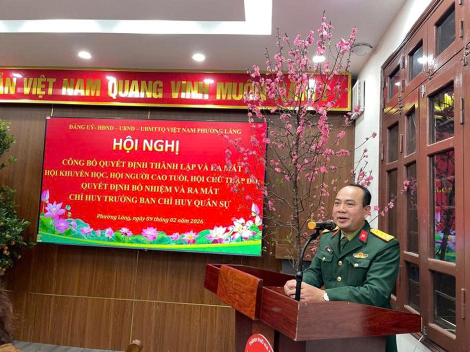 Ngày 9/2, phường Láng tổ chức Lễ công bố quyết định thành lập Hội Người cao tuổi, Hội Khuyến học, Hội Chữ thập đỏ phường và trao quyết định bổ nhiệm Chỉ huy trưởng Ban Chỉ huy Quân sự phường.