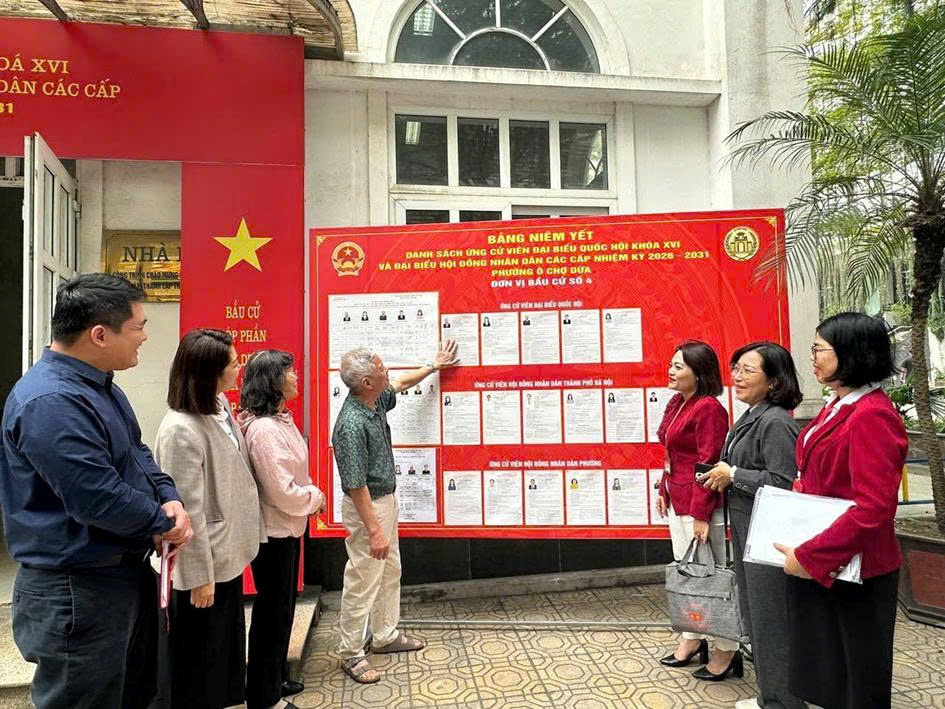 Đoàn công tác của Đảng ủy, Hội đồng nhân dân, Uỷ ban nhân dân, Ủy ban Mặt trận Tổ quốc Việt Nam phường Ô Chợ Dừa đã làm việc tại các khu vực bỏ phiếu nắm bắt tình hình triển khai công tác chuẩn bị phục vụ bầu cử đại biểu Quốc hội khóa XVI và đại biểu Hội đồng nhân dân các cấp nhiệm kỳ 2026-2031.