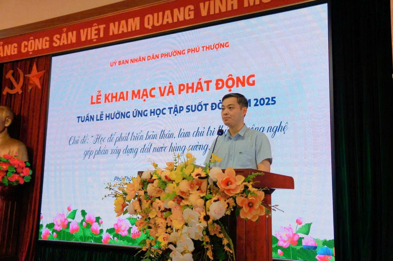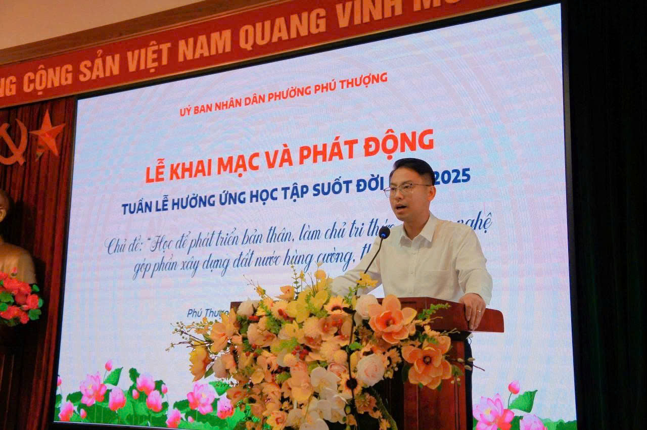 Chiều ngày 01/10, UBND phường Phú Thượng tổ chức Lễ khai mạc Tuần lễ hưởng ứng học tập suốt đời năm 2025; với chủ đề: "Học để phát triển bản thân, làm chủ tri thức và công nghệ, góp phần xây dựng đất nước hùng cường, thịnh vượng".