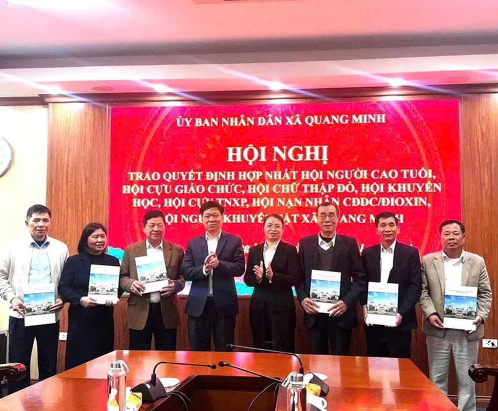Tại hội nghị, Ban Tổ chức đã công bố các Quyết định của UBND xã Quang Minh cho phép hợp nhất các hội của các xã, thị trấn Quang Minh, Chi Đông, Đại Thịnh, Kim Hoa (thuộc huyện Mê Linh trước đây) thành các Hội thống nhất theo địa giới hành chính mới của xã Quang Minh, thành phố Hà Nội. Đồng chí Phạm Anh Tuấn - Ủy viên Ban Thường vụ Đảng ủy, Phó Chủ tịch UBND xã đã trao Quyết định chúc mừng các ông, bà Chủ tịch lâm thời các Hội.