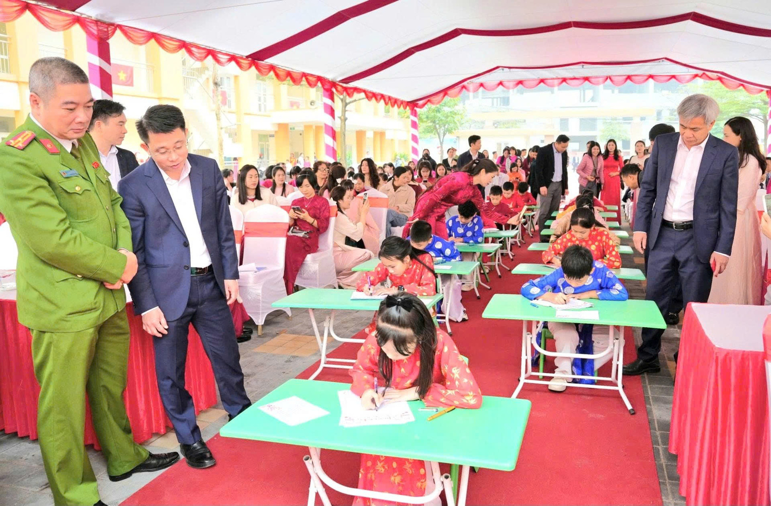 Sau khi các đại biểu thực hiện nghi thức khai bút đầu năm và tham gia trồng cây, tại khu vực trung tâm sân trường, 15 em học sinh tiêu biểu đại diện cho 7 Trường Tiểu học trên địa bàn phường cũng tham gia thi viết chữ đẹp với mong ước một năm học mới đạt nhiều thành tích cao. Những nét chữ mạch lạc, nắn nót, đầy ước vọng đầu xuân đã gửi gắm niềm tin vào thế hệ măng non - những chủ nhân tương lai của đất nước.