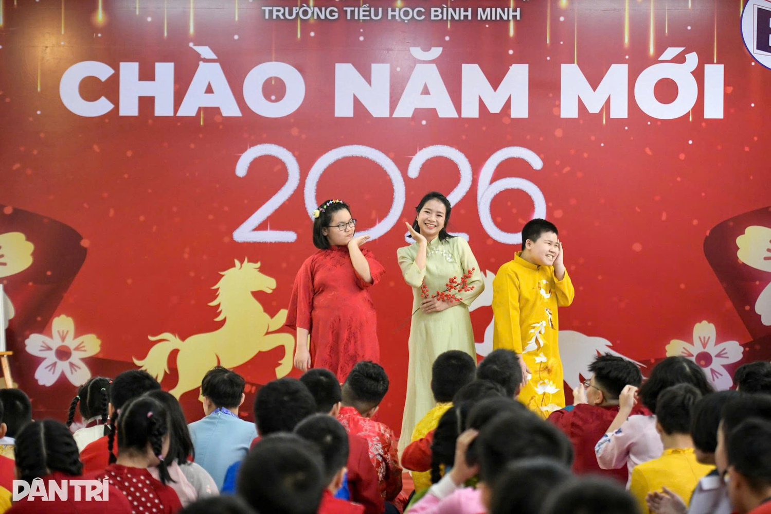 Học sinh Trường Tiểu học Bình Minh tại Lễ hội Xuân Trường Tiểu học Bình Minh nằm trên phố Thợ Nhuộm, là Trường Tiểu học chuyên biệt duy nhất của Hà Nội dành cho học sinh khuyết tật trí tuệ. Những sự kiện như lễ hội xuân không đơn thuần là hoạt động vui chơi mà là một dịp để giúp những đứa trẻ đặc biệt được học thêm một điều mới, dù đơn giản như một lời chúc sức khoẻ gửi bố mẹ, ông bà vào ngày Tết.