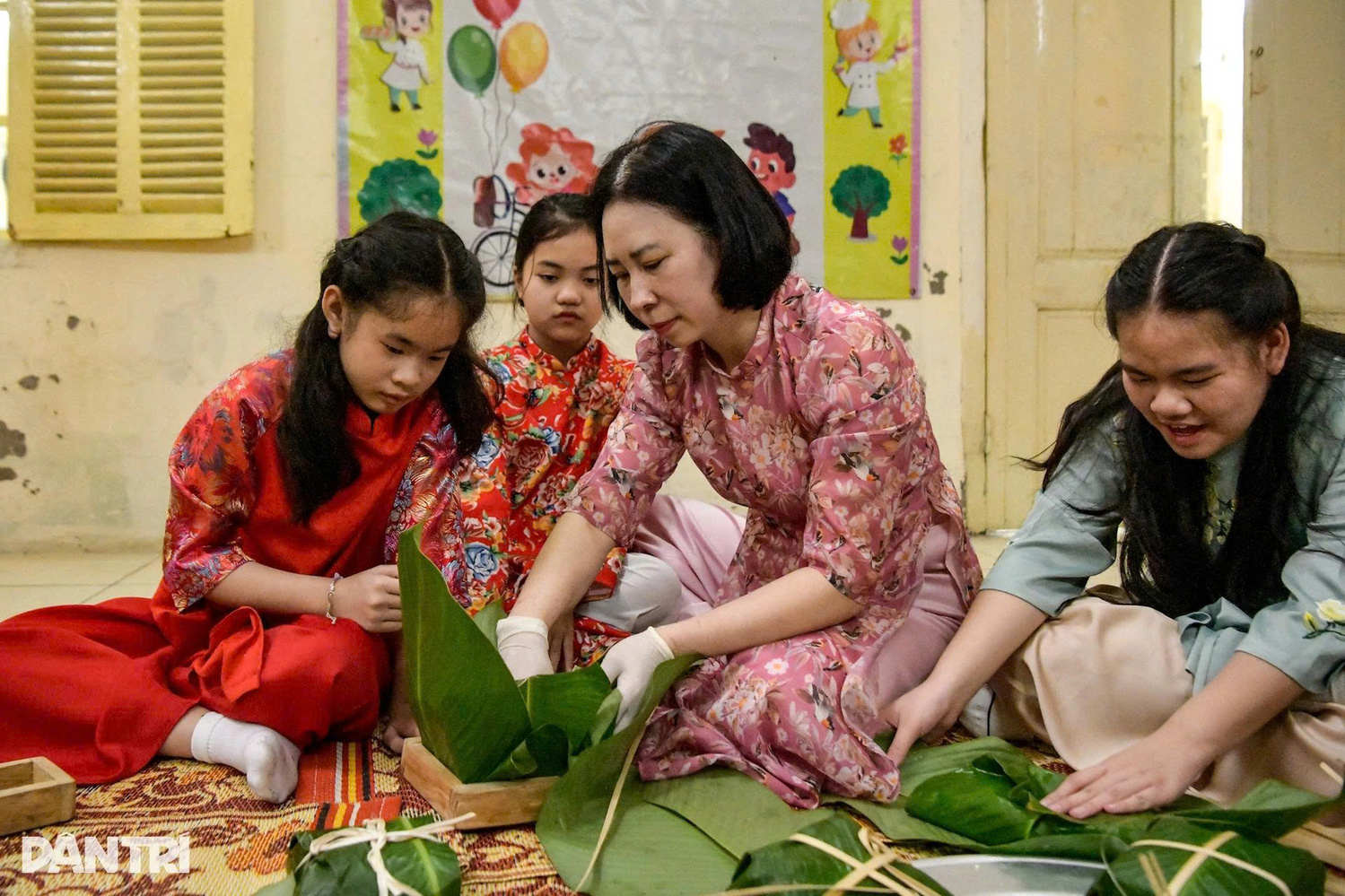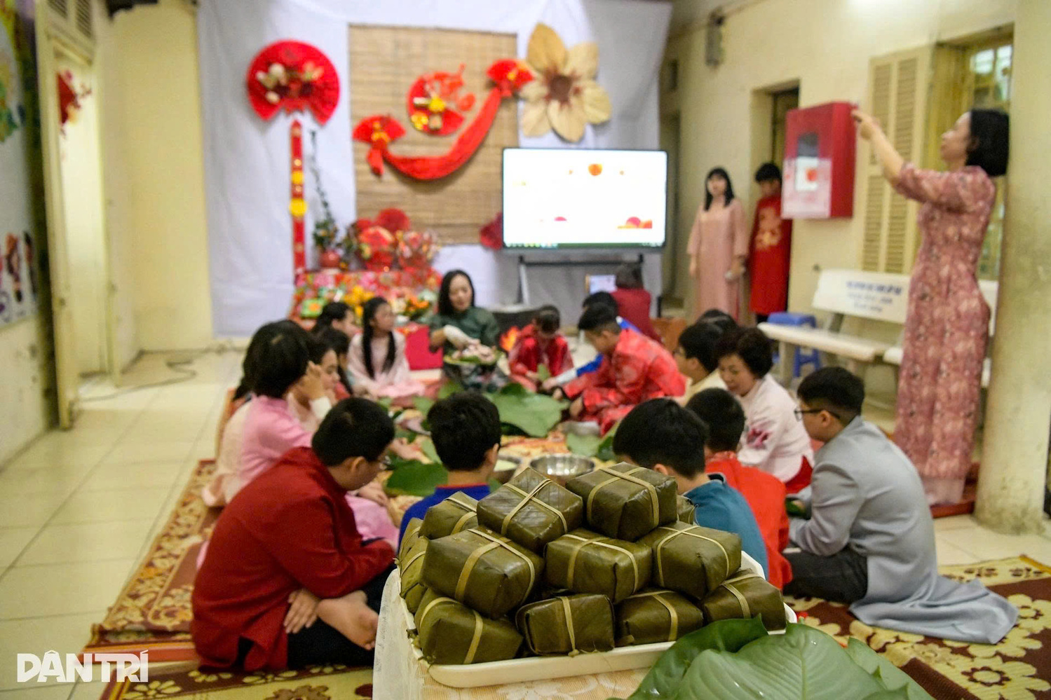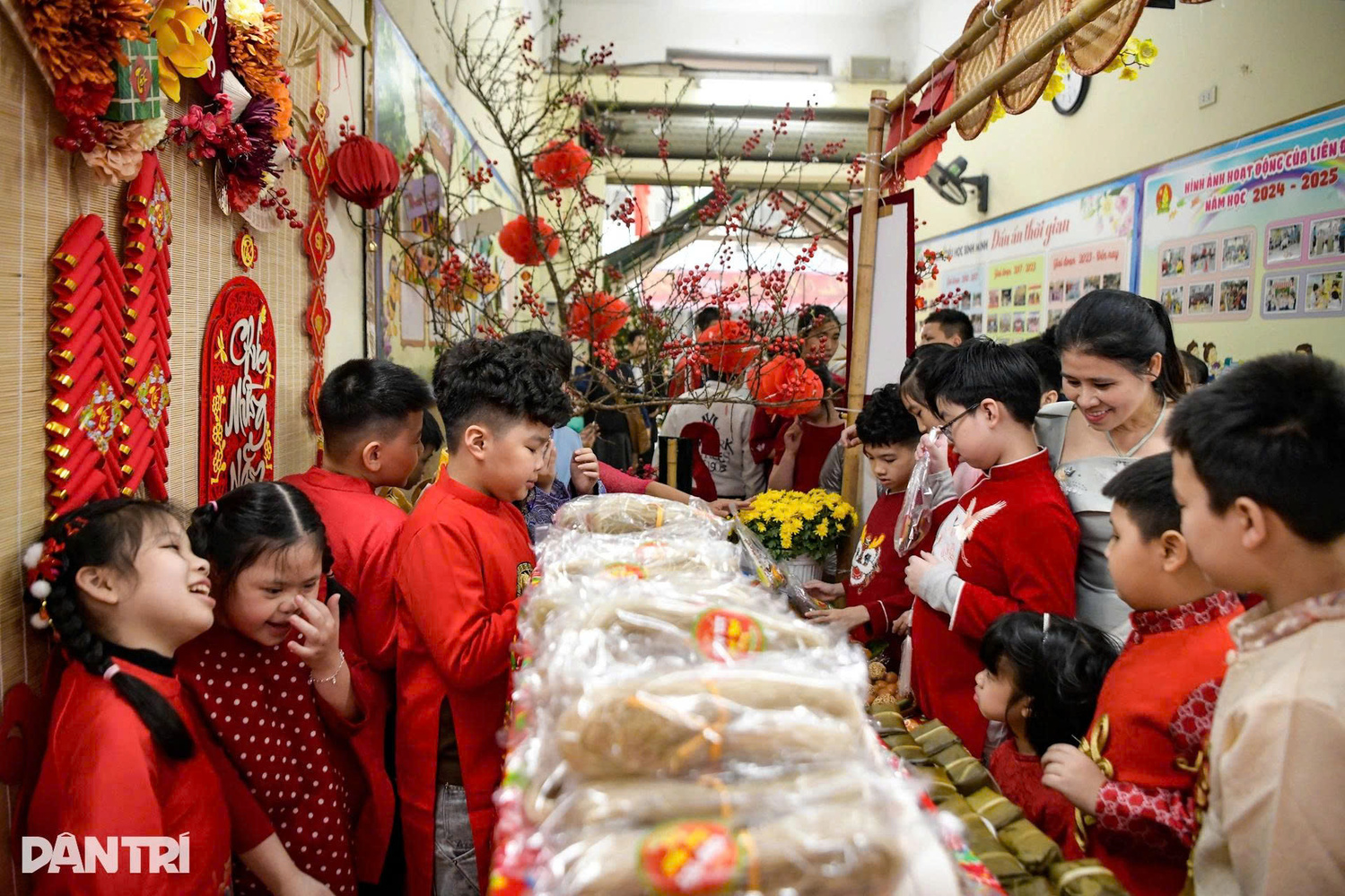 Sau các nghi thức truyền thống, học sinh được các cô giáo dẫn tới từng khu vực để trải nghiệm và để học về Tết Cổ truyền của dân tộc, từ những khái niệm nhỏ nhất như gói miến, gói măng đến những chiếc lá dong, hạt gạo gói để bánh chưng. Hiệu trưởng Trường Tiểu học Bình Minh Phạm Văn Hoan cầm tay học sinh chạm lên từng gói đồ để cảm nhận Tết bằng các giác quan.