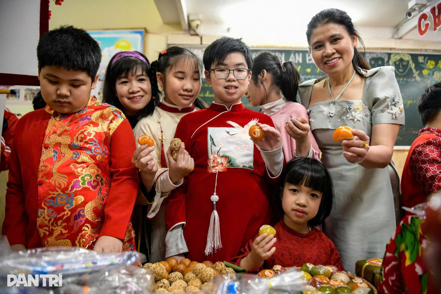 Cô và trò vui mừng tại Lễ hội Xuân