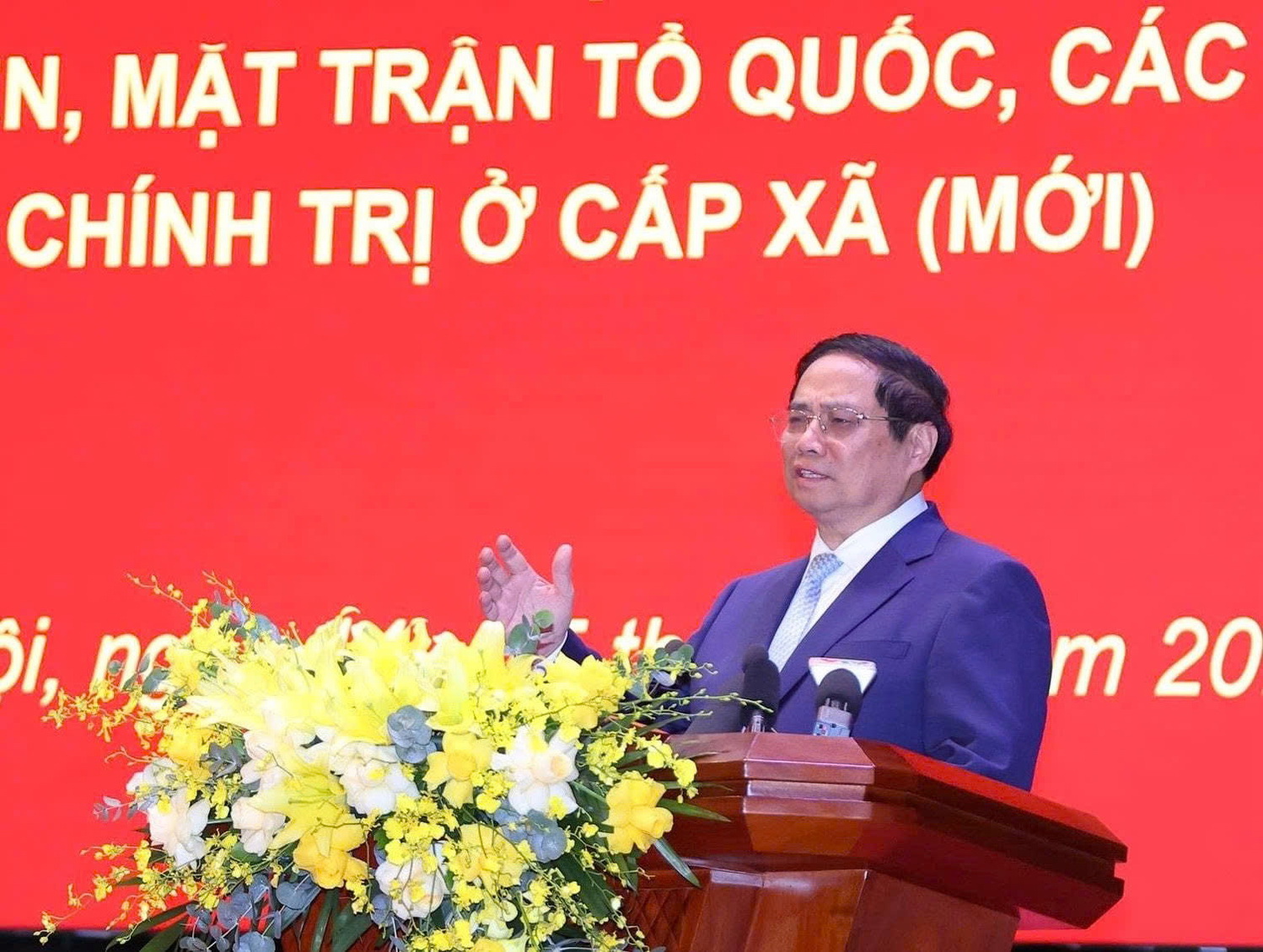 Phát biểu tại hội nghị, Thủ tướng Chính phủ Phạm Minh Chính đã nhấn mạnh những vấn đề quan trọng cần quán triệt liên quan cuộc cách mạng về tổ chức bộ máy của hệ thống chính trị, trong đó có việc sắp xếp địa giới hành chính các cấp và tổ chức chính quyền địa phương hai cấp.