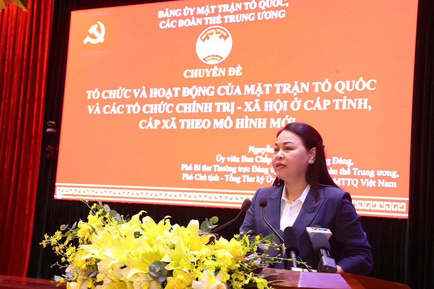 Ngay sau phát biểu của Thủ tướng Chính phủ Phạm Minh Chính, Phó Bí thư Thường trực Đảng ủy MTTQ, các đoàn thể Trung ương Nguyễn Thị Thu Hà đã giới thiệu Chuyên đề: “Tổ chức và hoạt động của MTTQ và các đoàn thể chính trị ở cấp xã (mới)”.