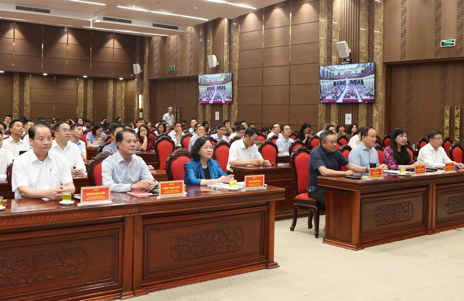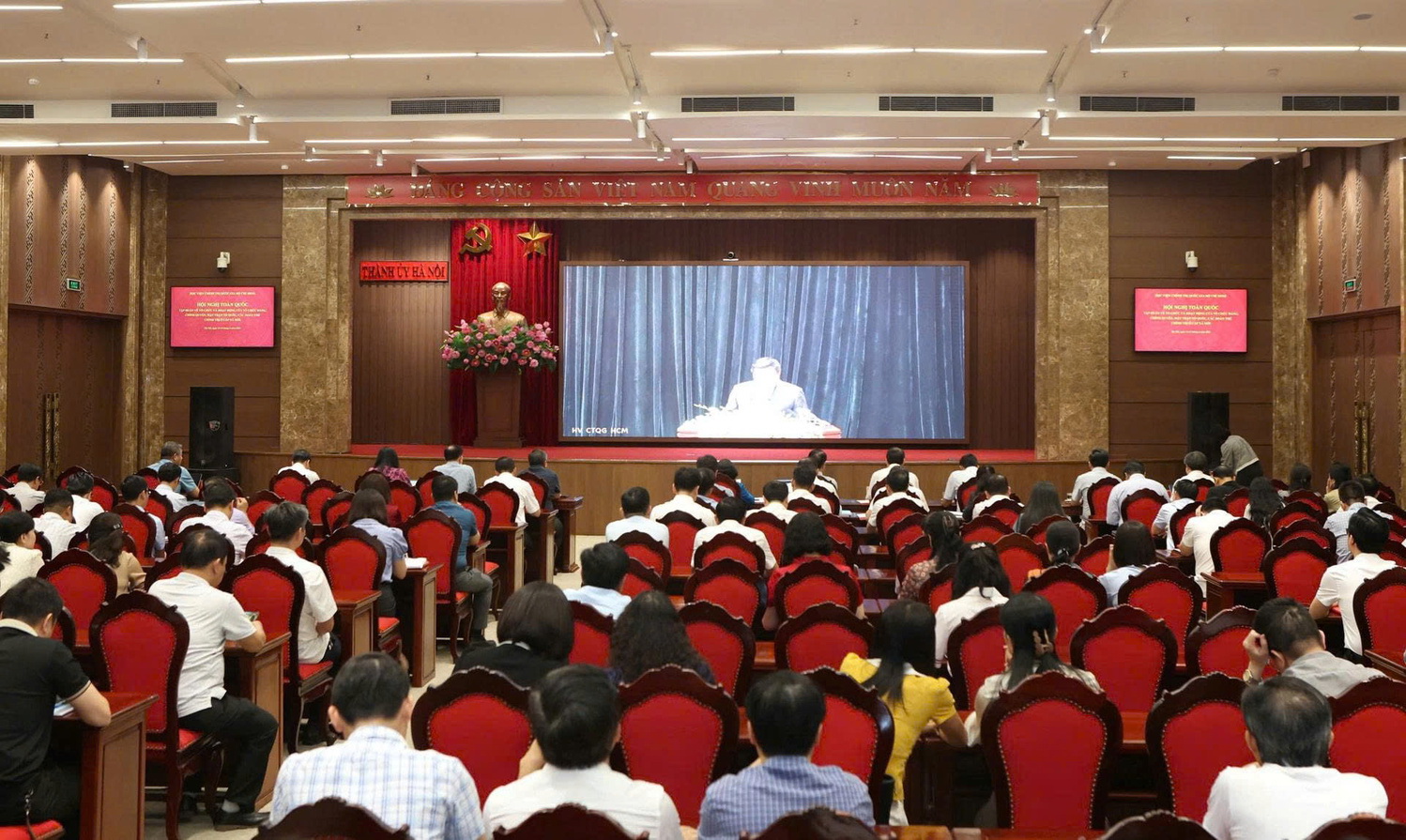 Dự hội nghị tại điểm cầu Thành ủy Hà Nội có Ủy viên Bộ Chính trị, Bí thư Thành ủy, Trưởng đoàn đại biểu Quốc hội Thành phố Bùi Thị Minh Hoài; Ủy viên Trung ương Đảng, Phó Bí thư Thành ủy, Chủ tịch UBND thành phố Trần Sỹ Thanh; Phó Bí thư Thành ủy, Chủ tịch HĐND thành phố Hà Nội Nguyễn Ngọc Tuấn; các đồng chí Ủy viên Ban Thường vụ Thành ủy; Thường trực HĐND, UBND, Ủy ban MTTQ Việt Nam Thành phố; cùng đội ngũ cán bộ chủ chốt các cấp từ thành phố xuống cơ sở.