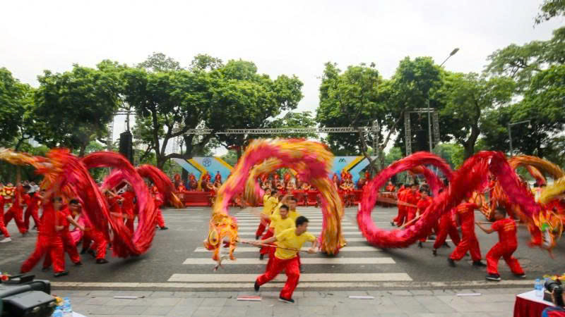 Biểu diễn múa rồng bên hồ Hoàn Kiếm
