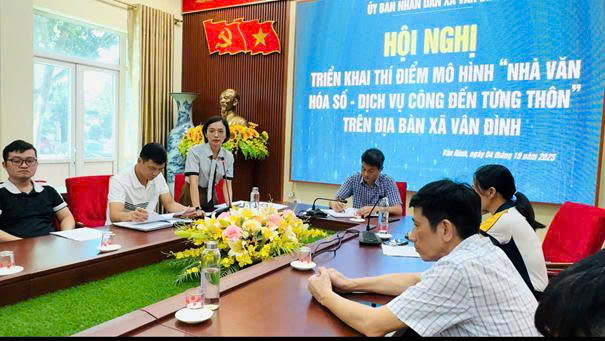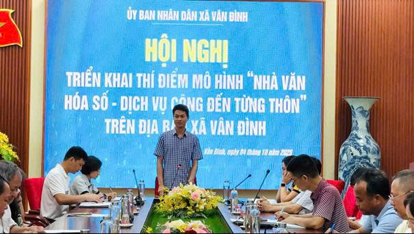 Sáng ngày 04/10/2025, tại Hội trường giao ban trực tuyến UBND xã Vân Đình, Phòng Văn hóa Xã hội xã tổ chức Hội nghị triển khai mô hình thí điểm “Nhà văn hoá số - Dịch vụ công đến từng thôn”. Tham dự có lãnh đạo, chuyên viên các phòng, ban chuyên môn; đại diện Ủy ban MTTQ Việt Nam xã, Công an xã; trưởng các thôn và thành viên tổ hỗ trợ chuyển đổi số cộng đồng.